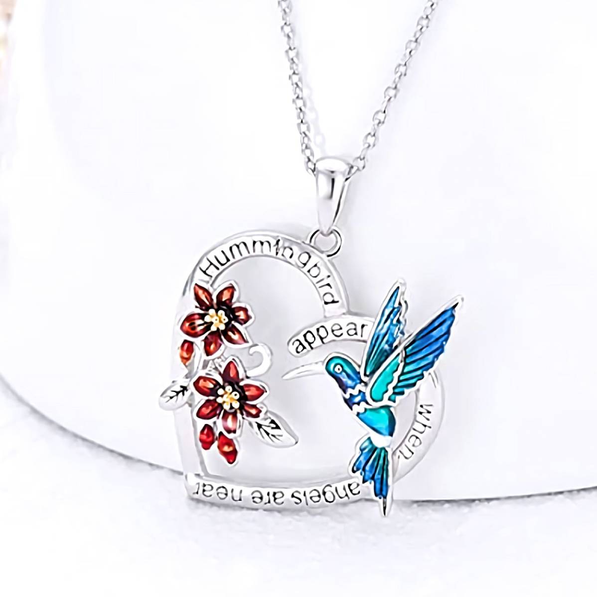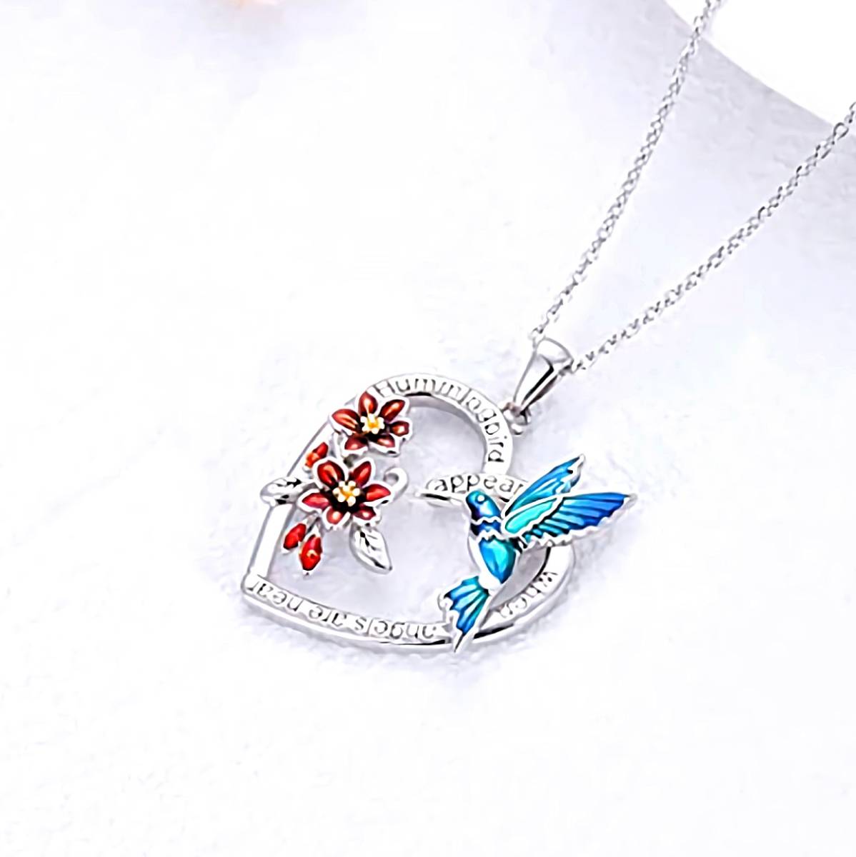 新品★送料無料★ネオンブルー サファイアハチドリハート プラチナ仕上925シルバーネックレス誕生日プレゼント旅行連休ギフト国内発送