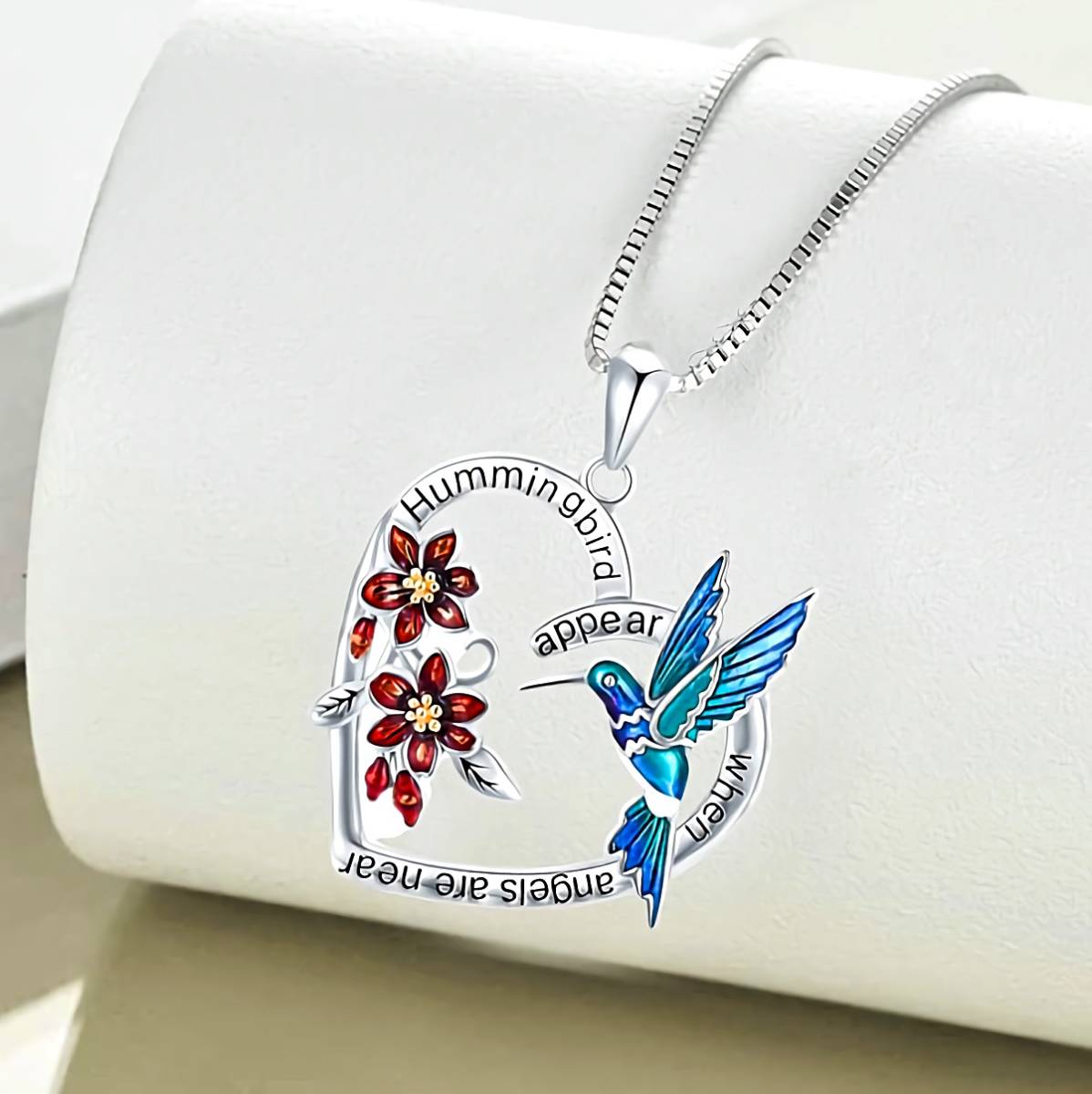 こちら青い色が涼しげなステンドグラス風のハチドリはハミングバード彫刻プラチナ仕上げ925シルバーネックレスです。