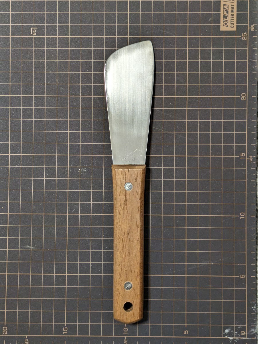 普段使用している使いやすいヘラを、ステンレス製の新品の素材から製作しています。