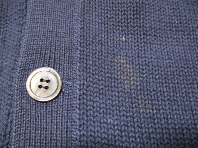 ■ USEDで第2ボタン横辺りと右肘にシミ汚れが御座います。その他は致命的なダメージは御座いません。
