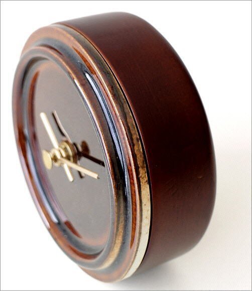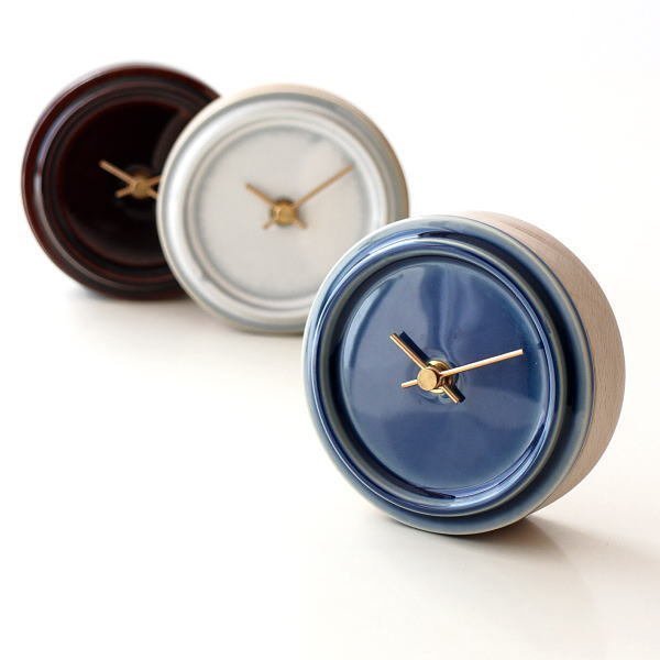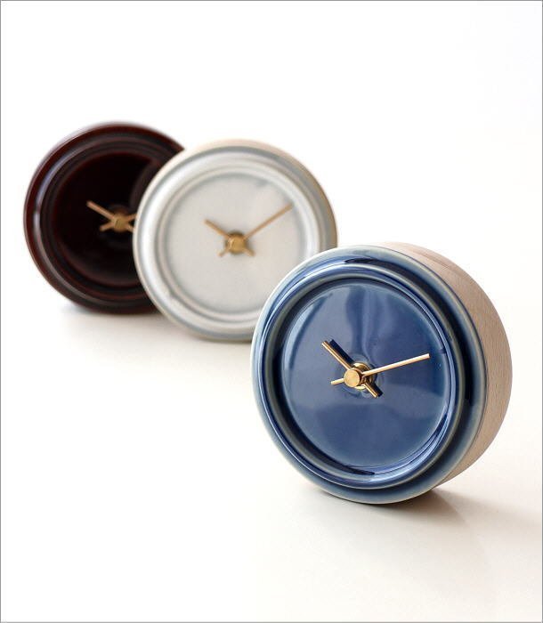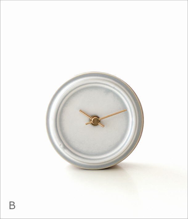 こちらのページでは【Bカラー】のみの販売です 陶器独特の温かみのある風合いの陶盤に 優しい感触のウッドの土台を合わせた ちいさな陶器の置き時計で ゴールドの針がアクセント シンプルな丸い陶板の中に 釉薬の色と質感のこだわりを詰め込み 職人さんが一つひとつ丁寧に手作りした こだわりの置時計は 空間の中に癒しをもたらしてくれそう 僅かに秒針の音が聞こえます 商品名 : 陶器とウッドの置時計 商品番号 : ssk4546 全体サイズ(cm) : 直径11.5×奥行4.5 重量 : 360g 材質 : 陶器 他 生産国 : 日本(岐阜・美濃焼) ※単三電池×1本つき ※商品の特性上、手作り品の為、釉薬の斑や文字盤と土台の間の僅かな隙はご容赦ください ※強い磁気のある所に置かれますと、磁力の影響で進み遅れが生じたり、時計が止まることがありますのでご注意ください -陶器(土物)の特性とお願い- 土物は同じ技法、同じ窯で焼成しても土や釉薬に含まれる天然鉱物などの影響や天候で焼き上がりは微妙に異なります。工業製品のように同一の物になる事はありません。手作りの不均一性、窯変、釉薬の細かいヒビ(貫入)や垂れ等は、製造元より土物の特性として良品の扱いとなります。ご理解頂きお買い求めくださいますようお願い申し上げます |