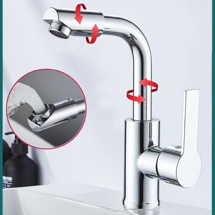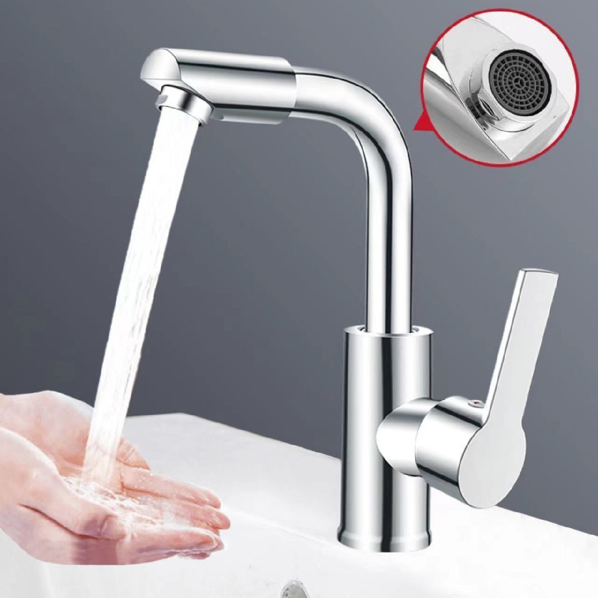 蛇口 混合水栓 360°回転 冷熱水対応 上向き出水 60cmホース付  トイレ 手洗い バスルーム 立水栓 洗面台 シングルレバー MAY482