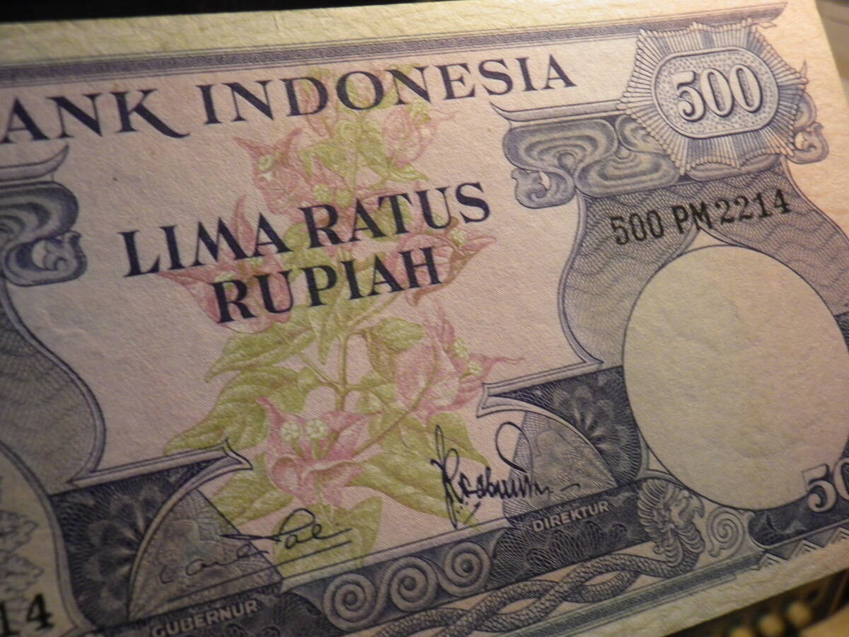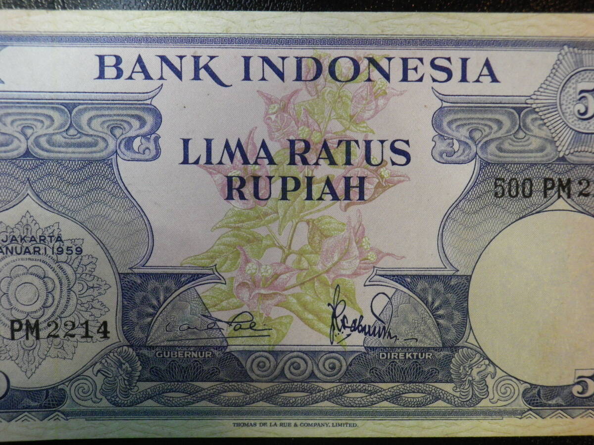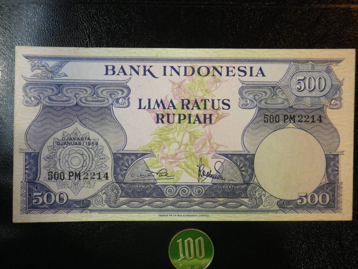 レア!インドネシア 花シリーズ 1959年 500Rupiah 極美品+ (TDLR)印刷