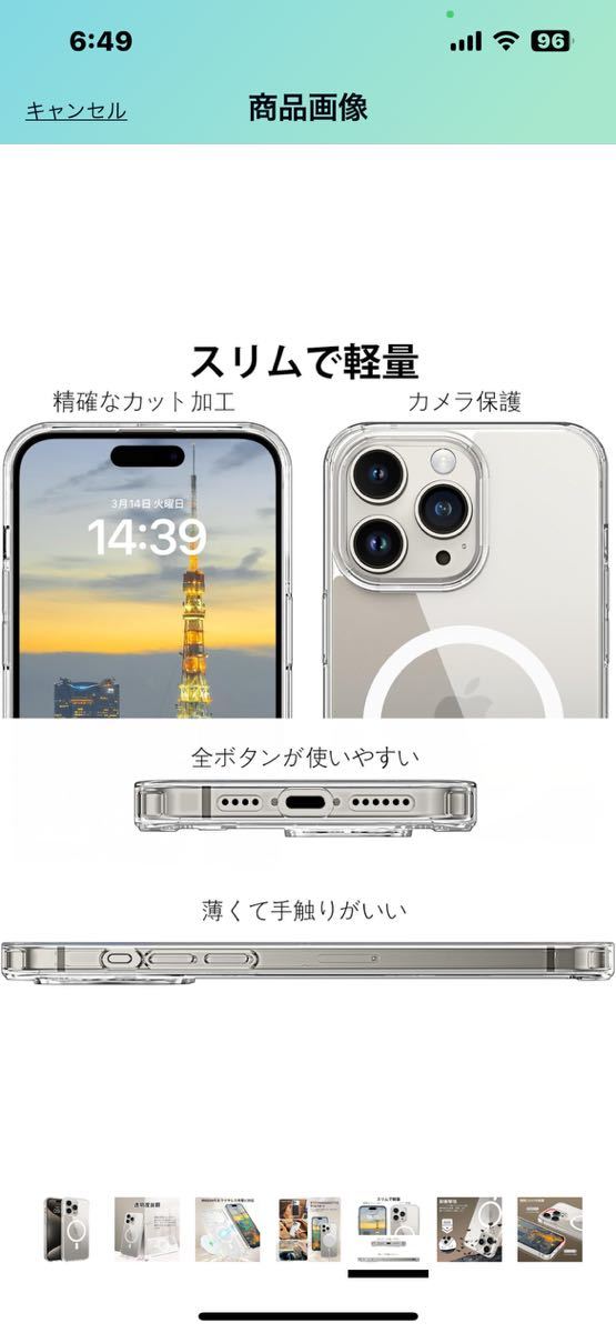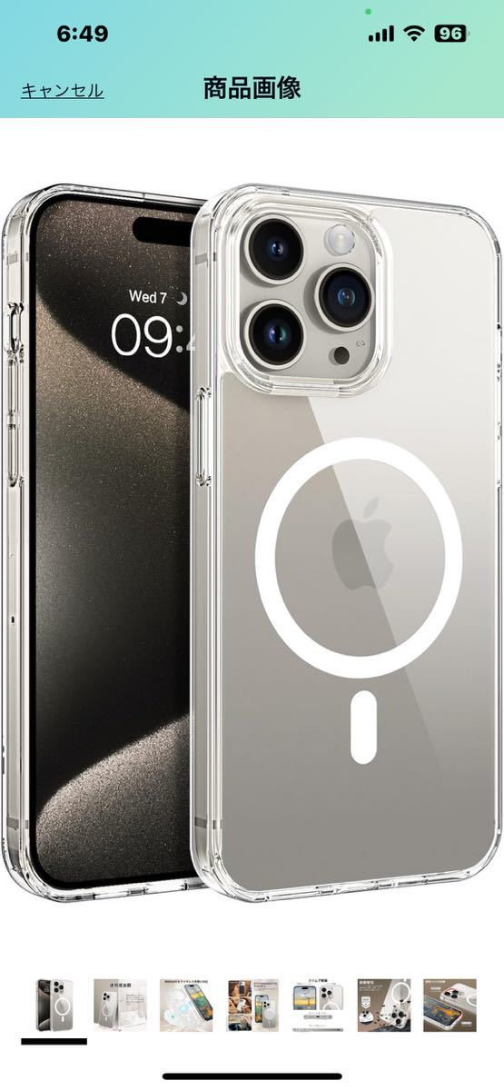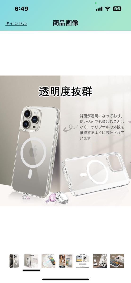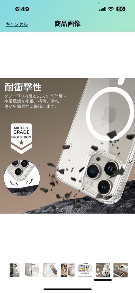 e236 iPhone 15 Pro Max ケース Magsafe 米軍MIL規格 耐衝撃 指紋なし 全面保護 指紋防止 ストラップホール付き (透明/フィルム付き)