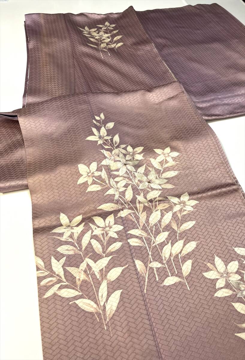 紅型風の柄行の綸子地です。単衣仕立てです。