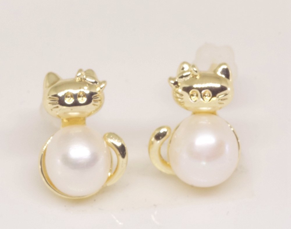 18K RGP ゴールド 猫 パール ピアス gp5608