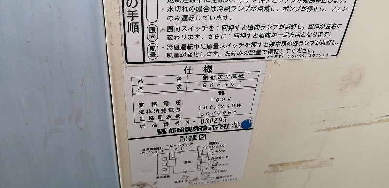 【仕様】冷却能力2200/2800kcal/h、100V、50/60Hz、消費能力190/240Kw