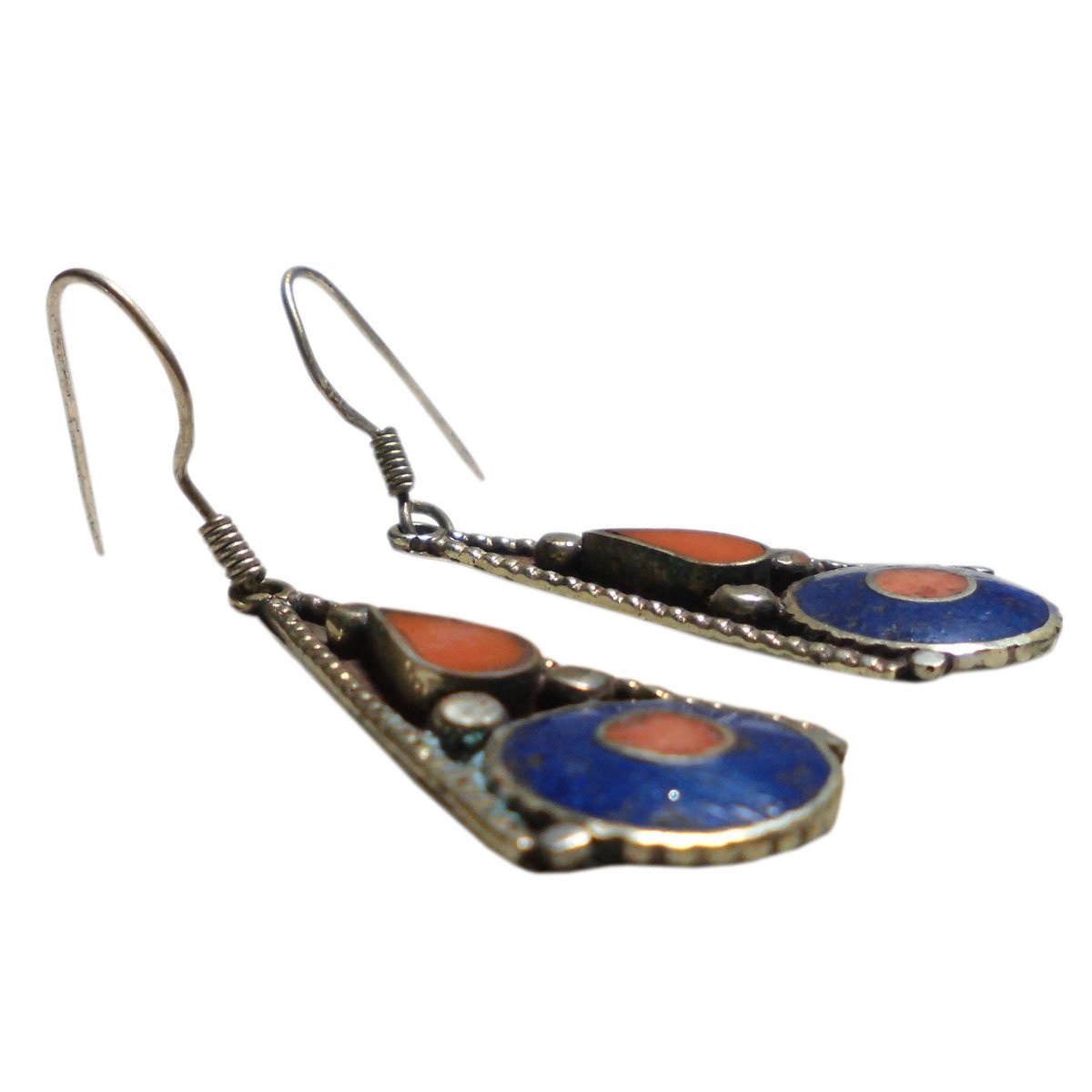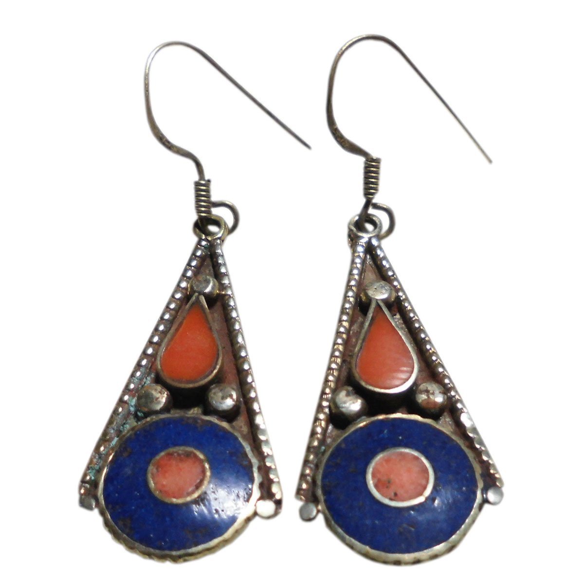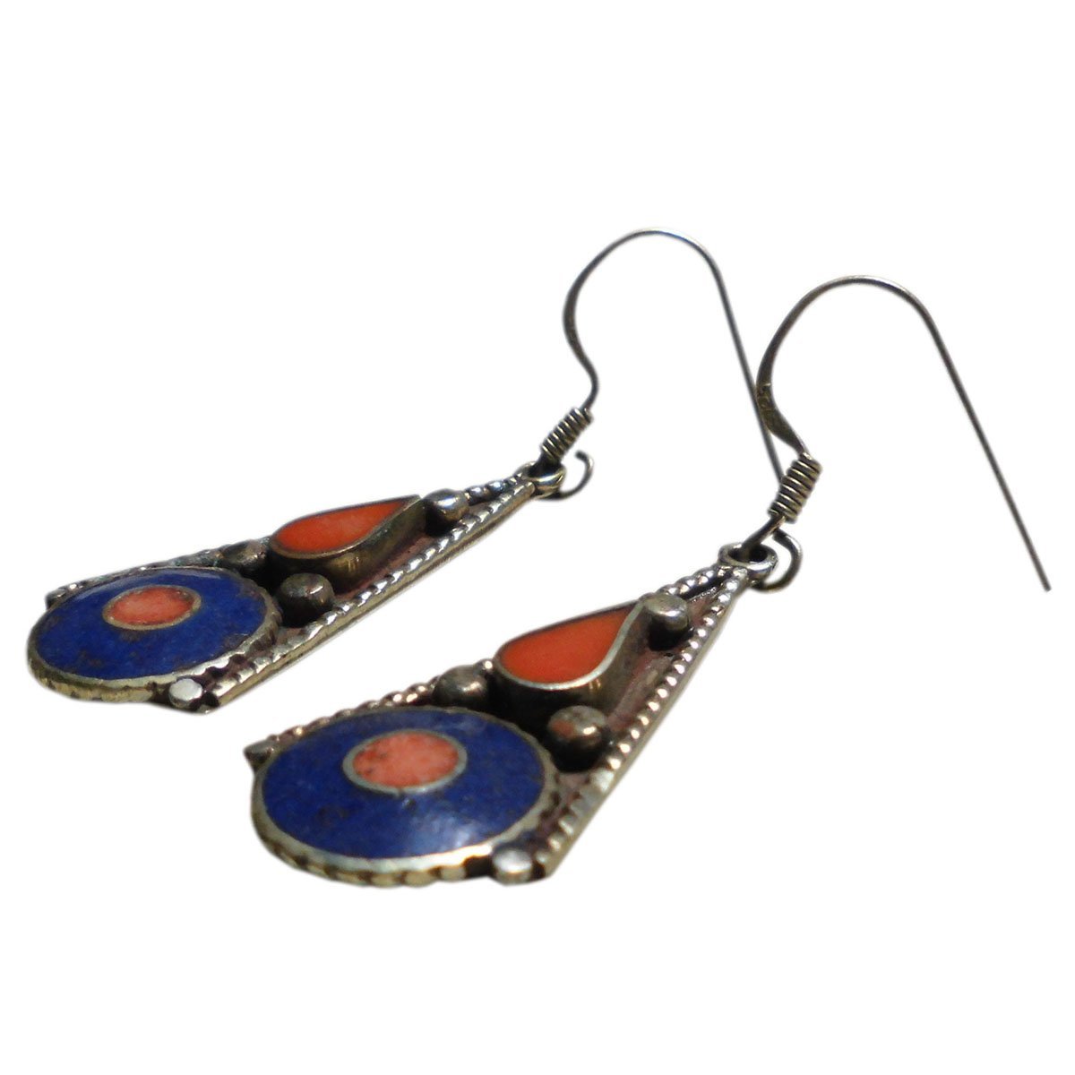 ■☆アジアン雑貨 ネパール銀職人 天然石メタルピアス ラピスラズリ・トルコ石 (MTP-32)
