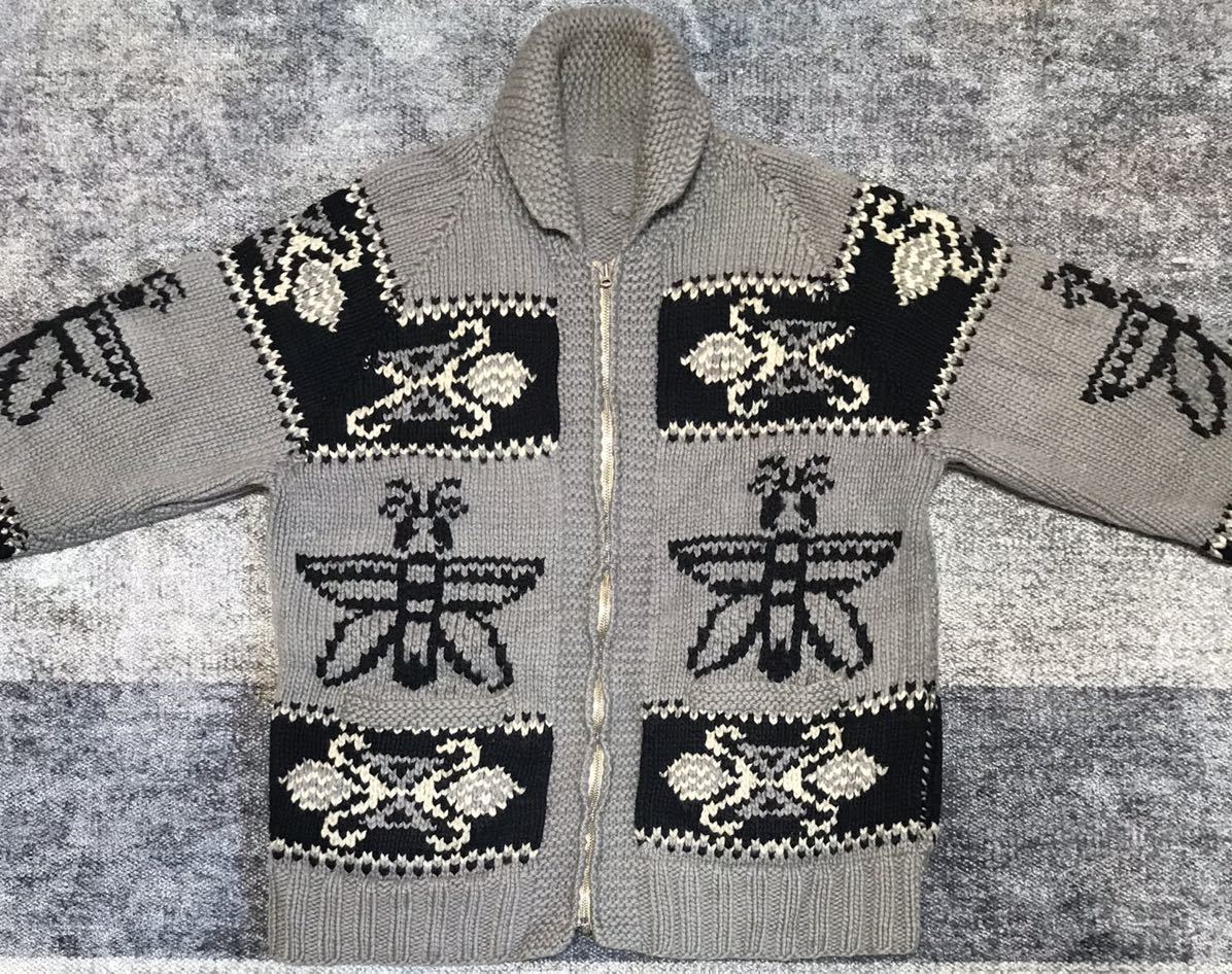 超レア 幻 スペシャル 幸せのトンボ&薔薇柄 60's vintage 当時物 ★ UNKNOWN ★ LIGHTNINGジッパー 角蜻蛉 花柄 ローズ カウチン ニット ジャケット です。