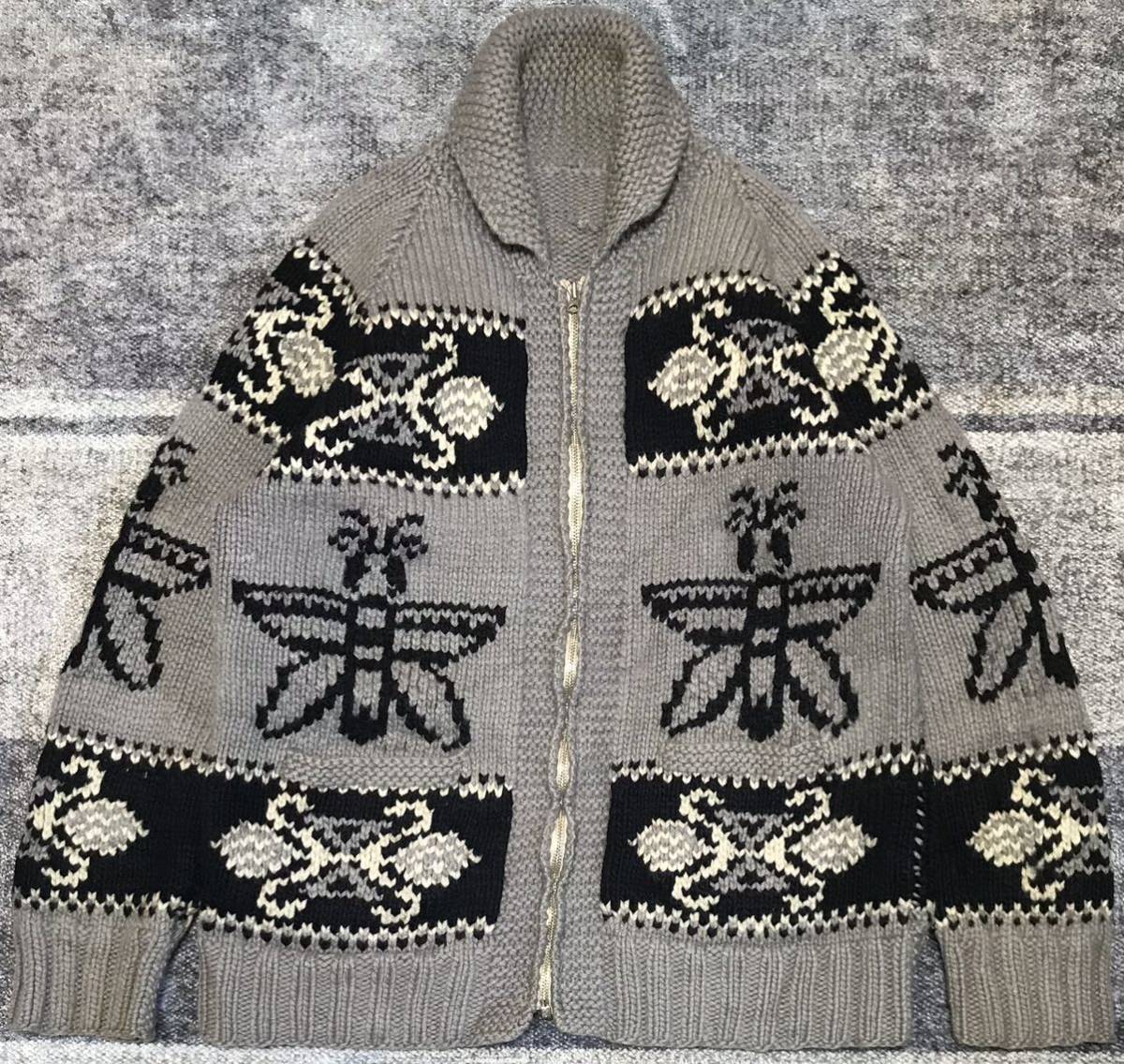 今回の出品アイテムは60's vintage、UNKNOWN、トンボ&薔薇柄、カウチンニットジャケットです。