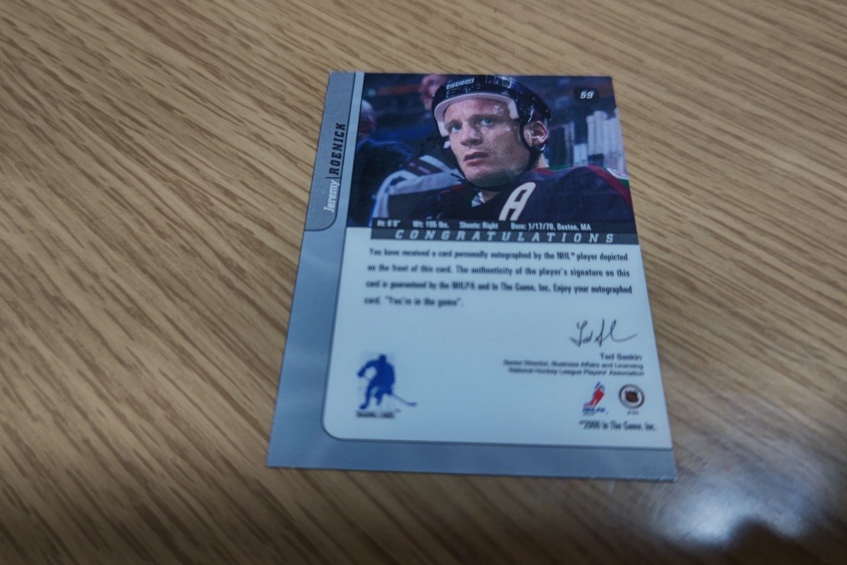 アメリカ4大スポーツのNHLで通算500ゴール達成、オールスター9回選出され、アメリカ代表としても国際大会で活躍したジェレミー・ローニックの直筆サインカード。カードはBe A Playerの直筆サインカードです。