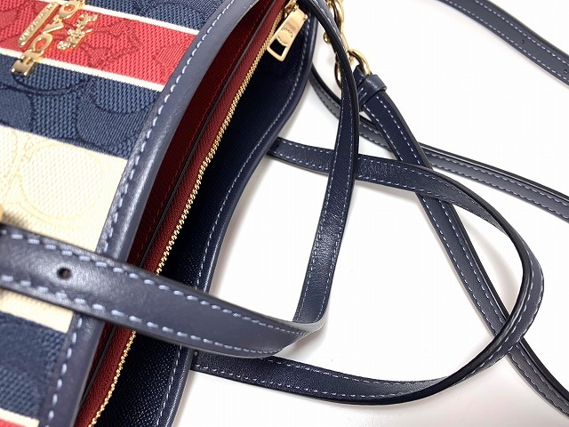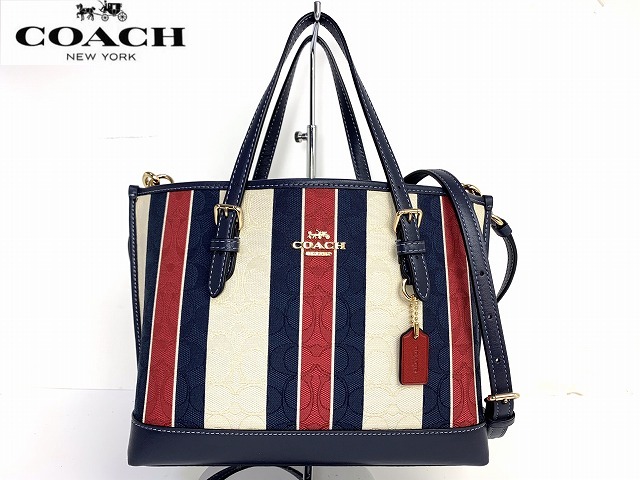 新品同様★送料無料★ コーチ COACH ストライプ シグネチャー モリー トート 2Way ショルダーバッグ ハンドバッグ