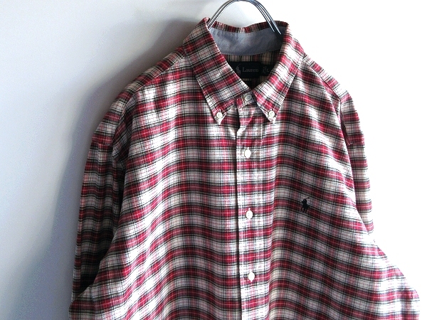 ラルフローレンのシャツ。チェックのコットン生地を使用しております。襟はボタンダウン。左胸のポロポニーのロゴ刺繍がさりげないアクセントになります。上質な素材使いと綺麗なシルエットで、様々なコーディネートにお使い頂ける一着です。