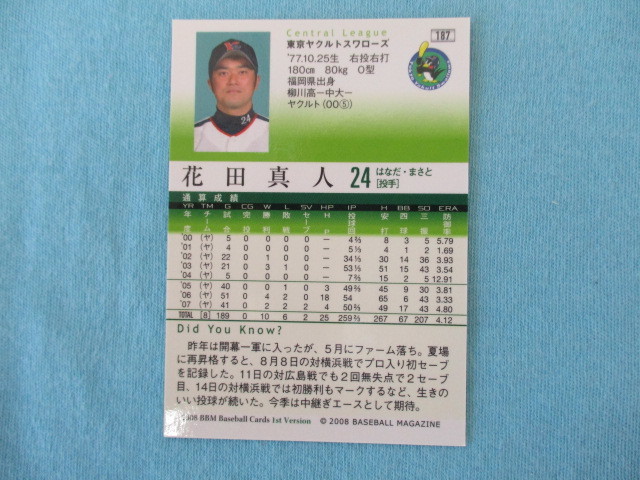 ★BBM 2008★1st Version〔187 花田真人 東京ヤクルトスワローズ〕トレカ♪