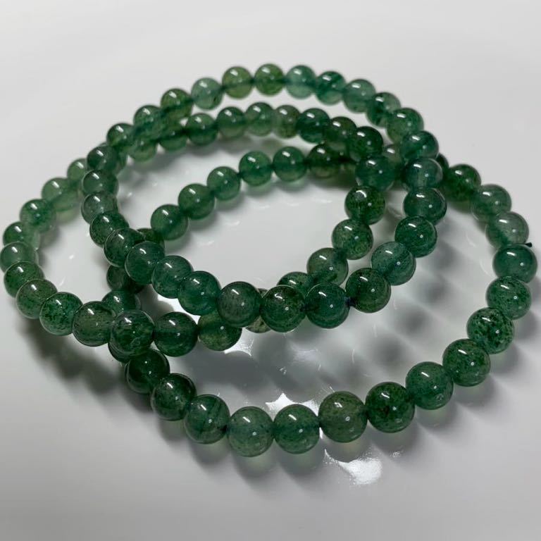 天然石★グリーン ストロベリークォーツ ブレスレット★① 6mm後半 16cm