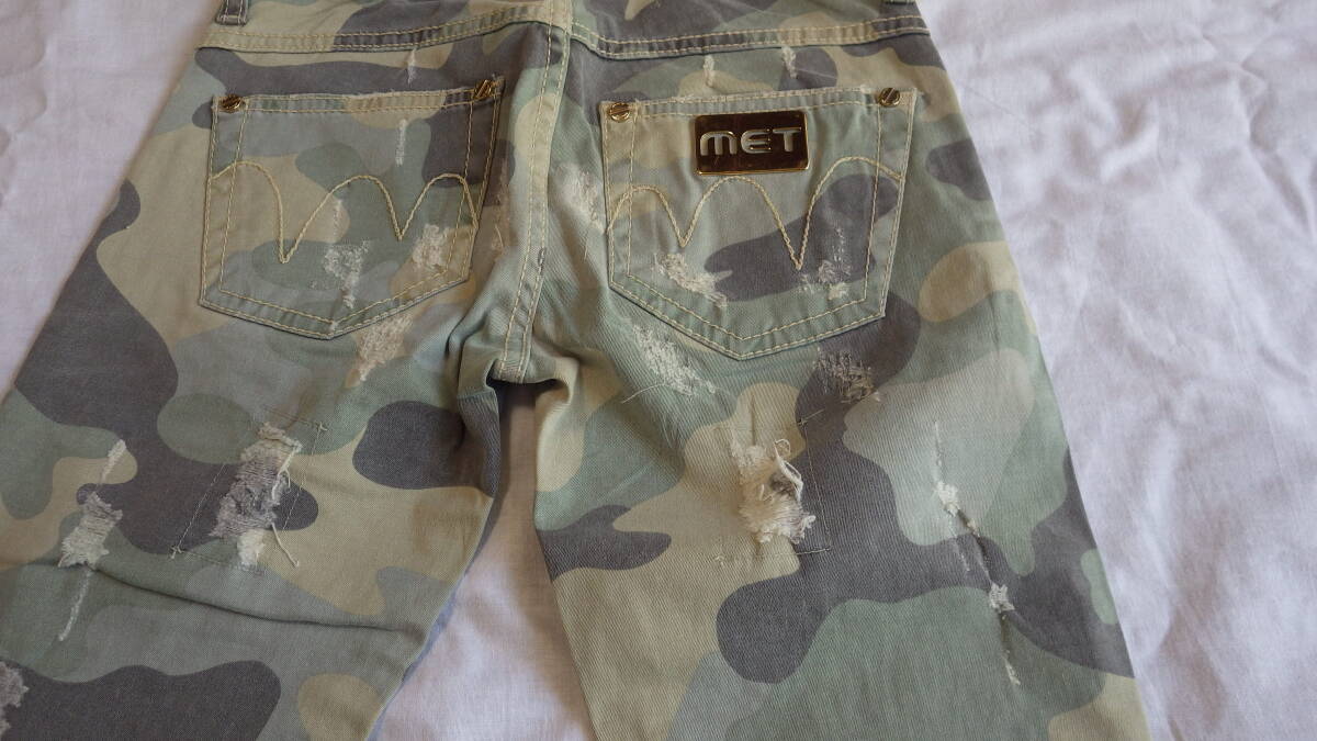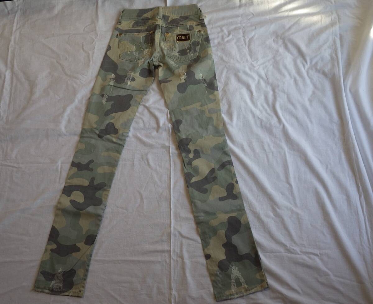 値下げ MET メット ロングパンツ ダメージ加工 ラインストーン付き 23インチ カーキ カモフラージュ柄 参考上代34800円 イタリア製