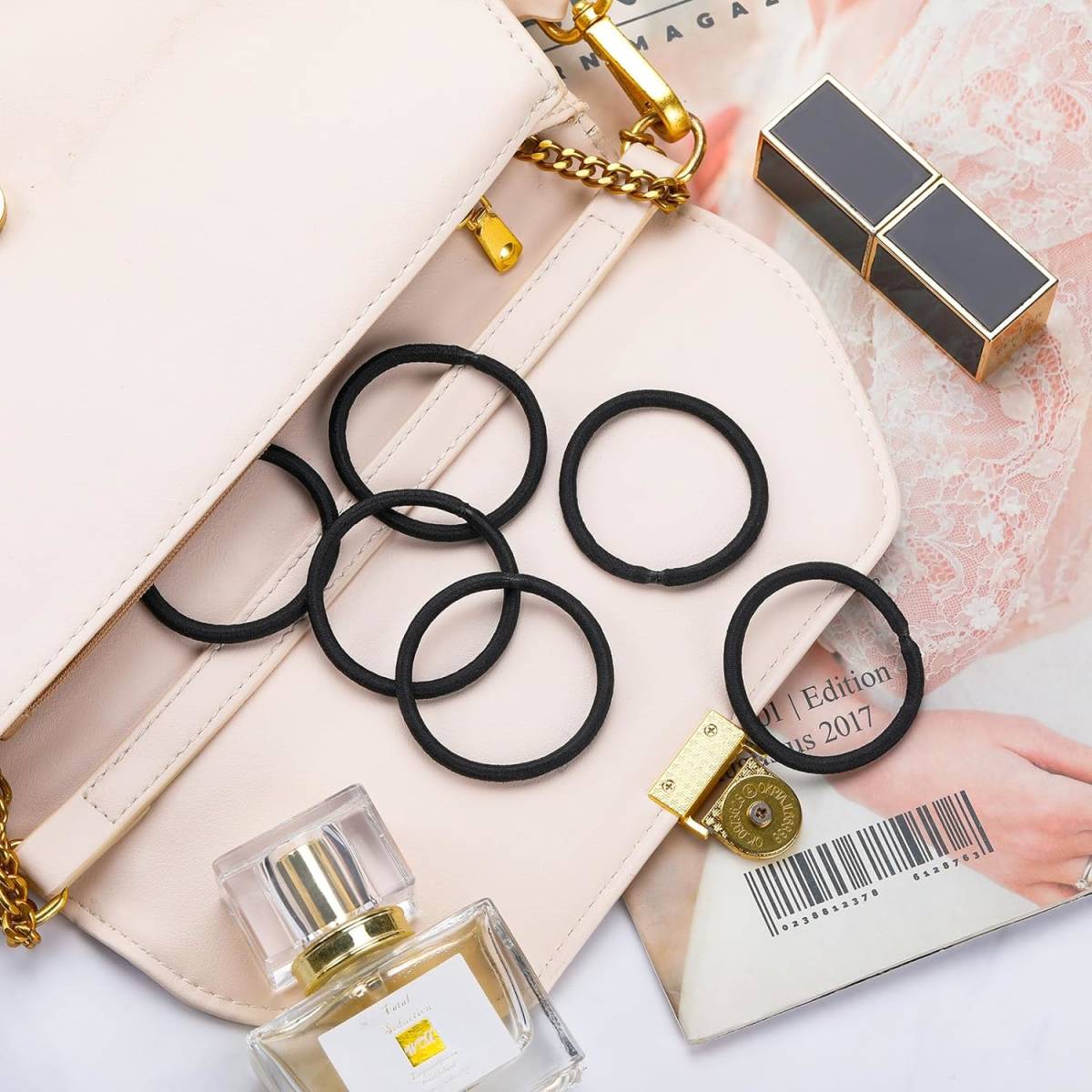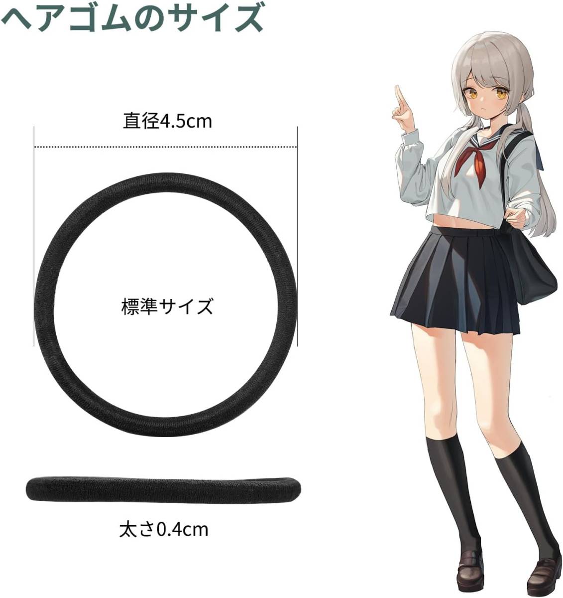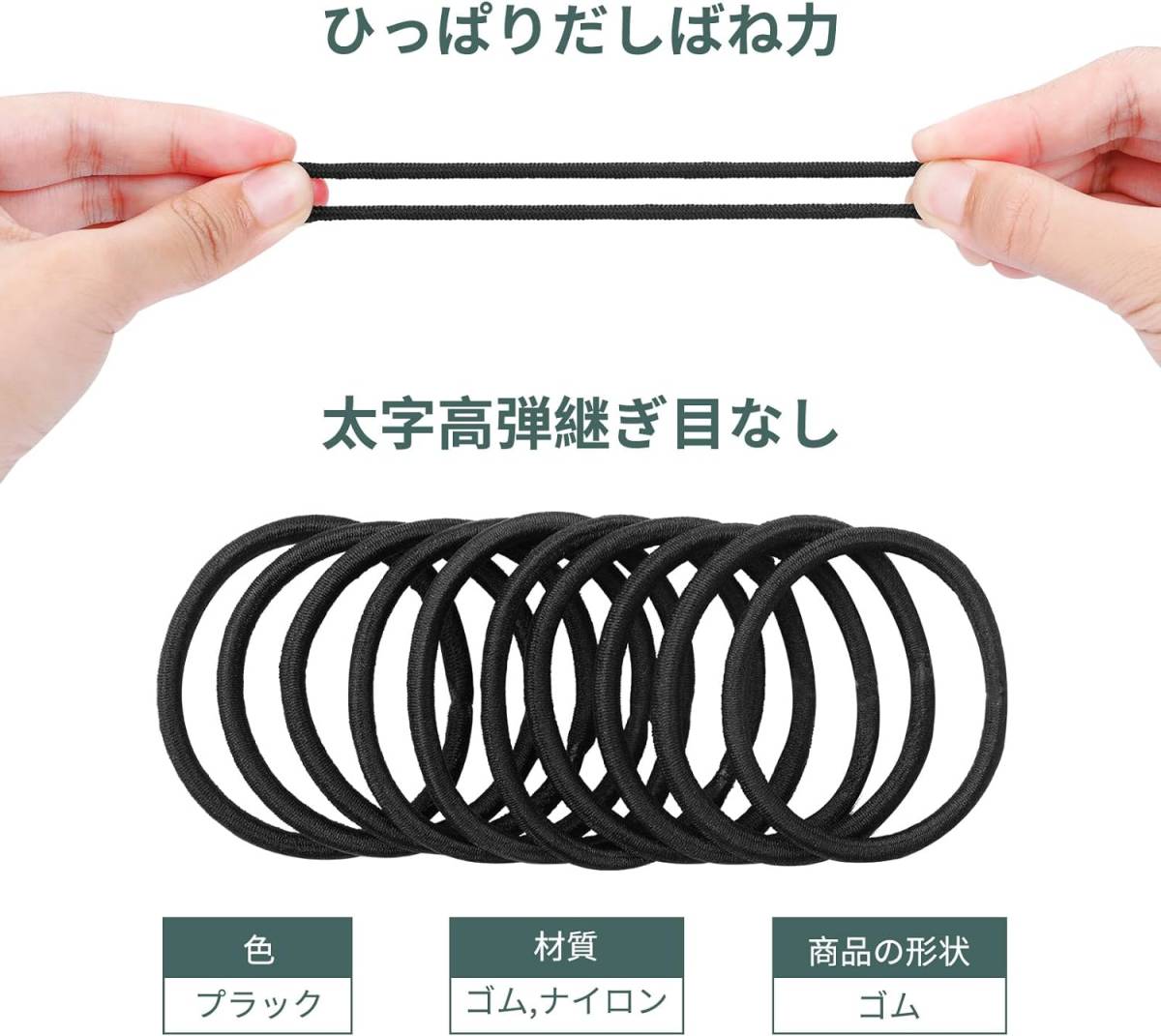 結び目がないシンプルなヘアーゴムの10本セットです。太さ約4.5mm、外径5cm、リッチブラックのカラーで、ココアブラウンのポピュラーな髪ゴムです。子供から大人まで、カジュアルからフォーマルな場面まで幅広くご利用いただけるリングゴムです。