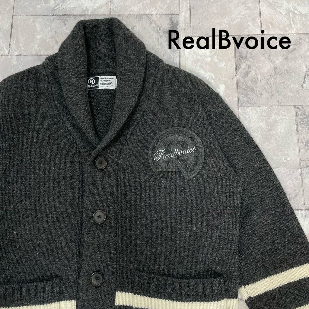 Real Bvoice リアルビーボイス ウールカーディガン ニット ショールカラー ワッペンロゴ グレー サイズM 玉SS1366