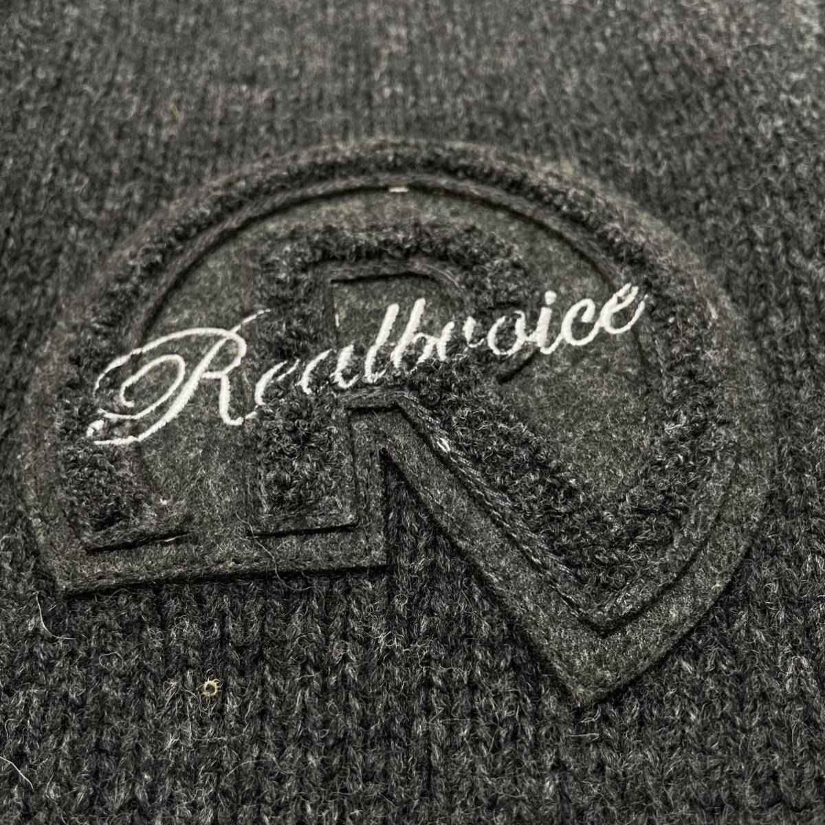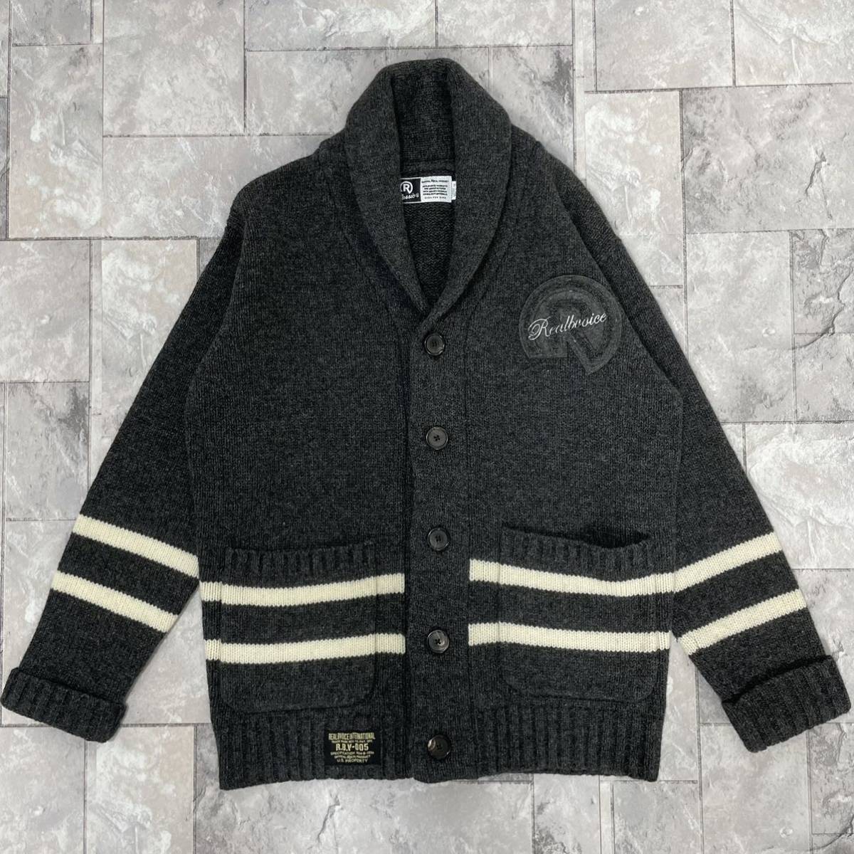 Real Bvoice リアルビーボイス ウールカーディガン ニット ショールカラー ワッペンロゴ グレー サイズM 玉SS1366