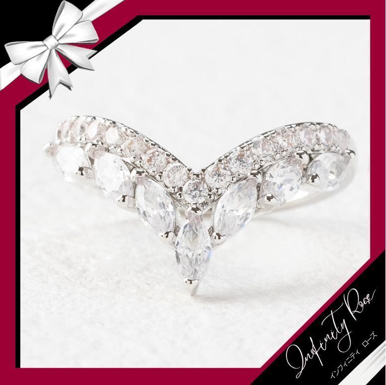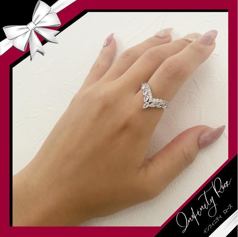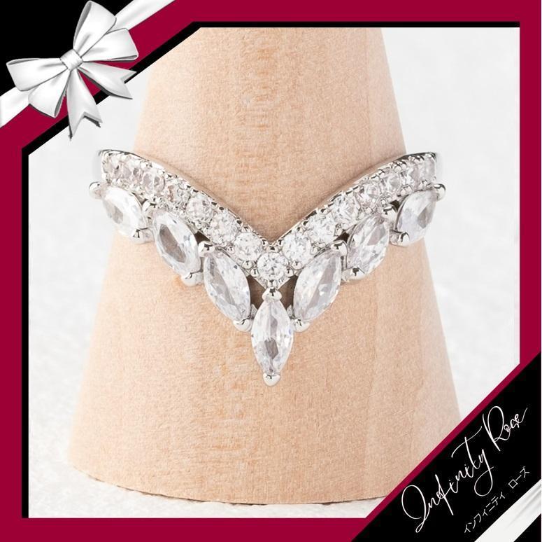 (R008S)16号 煌めく清楚で女の子らしいティアラリング 爪留め 指輪