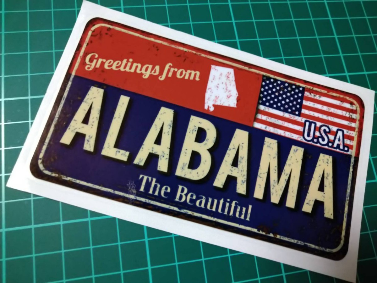 アメリカ合衆国南部に位置するアメリカ航空宇宙局関連施設が集中するハンツビル等、主要都市が集まっているアラバマ州デザインのステッカー★