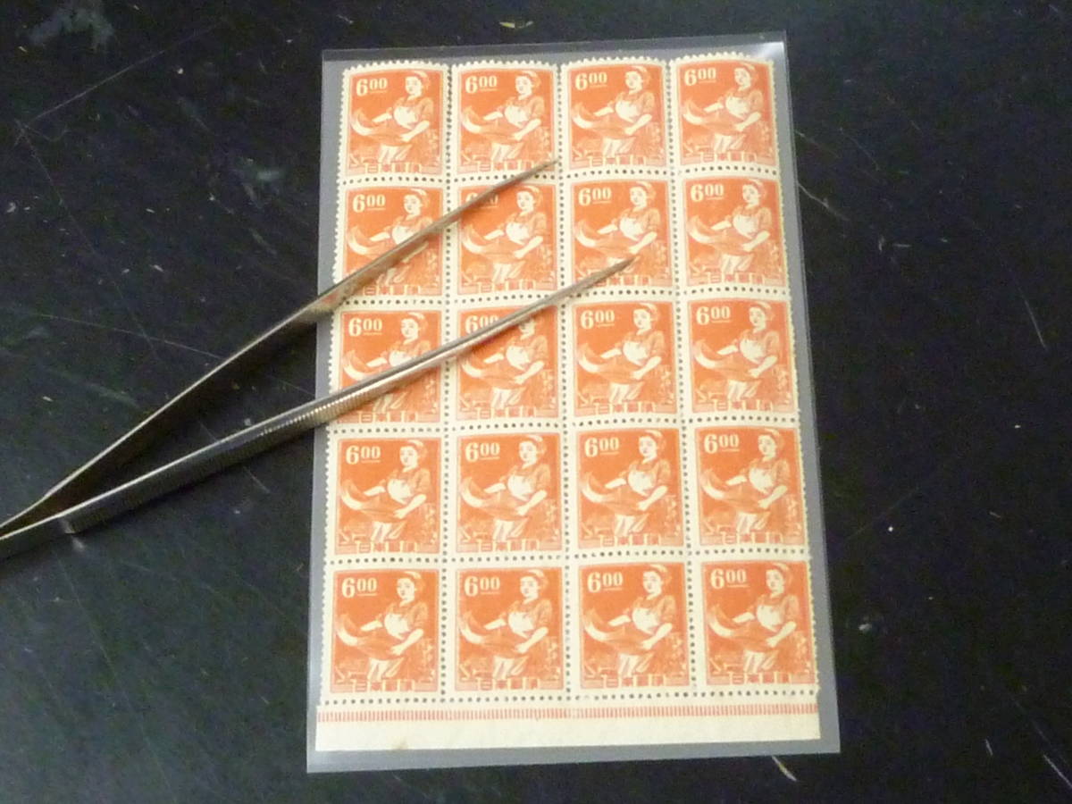 24 S №22 日本切手 1948-49年 産業図案 #268 6円 20枚ブロック 未使用NH 【型価 30,000円】