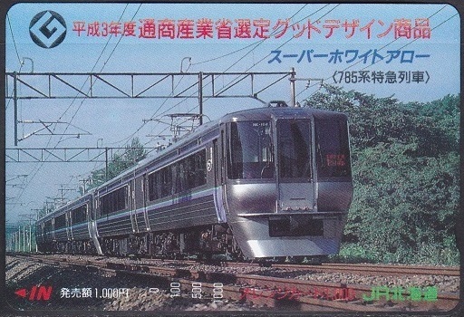 JR北海道オレンジカード ★ 785系特急列車「 スーパーホワイトアロー 」 / グッドデザイン ★ 1000円券 未使用 / 即決 ♪