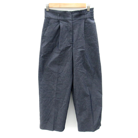 テチチ Te chichi ダンガリーパンツ ワイドパンツ ロング丈 無地 フリル M 青 ブルー /SY17 レディース