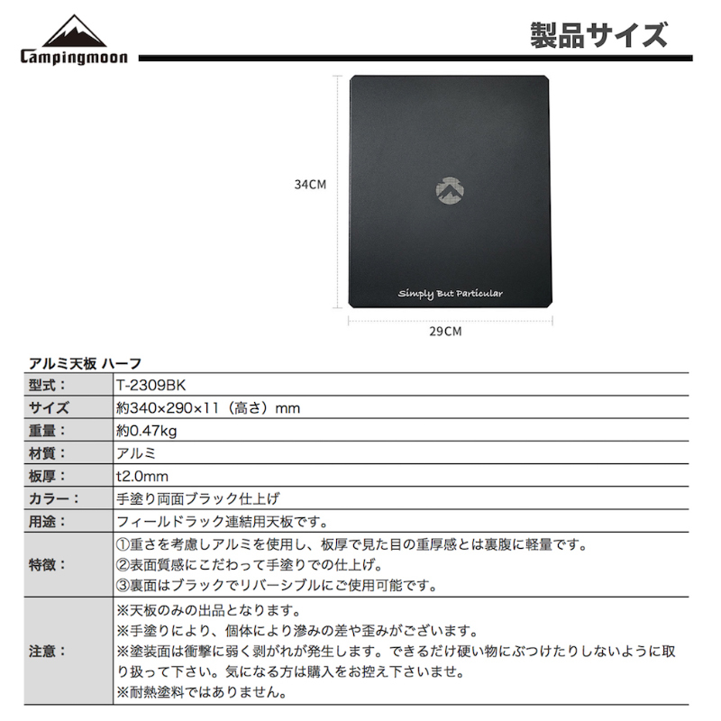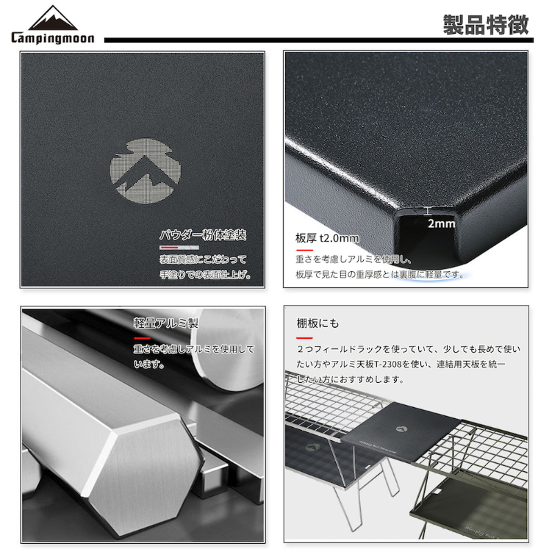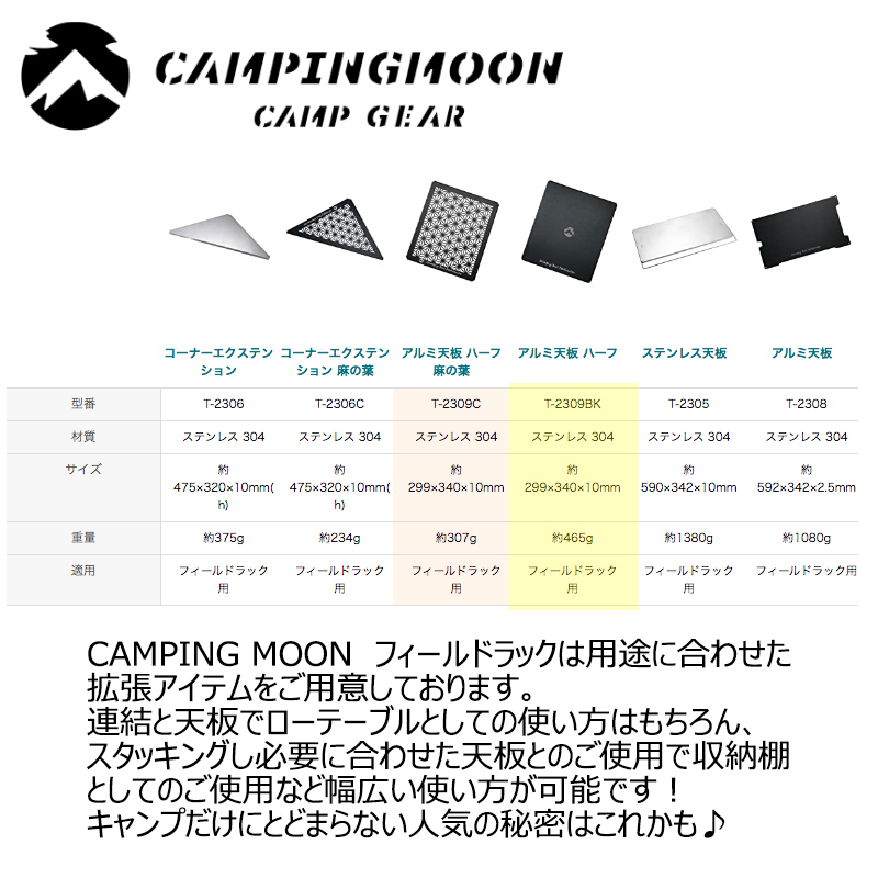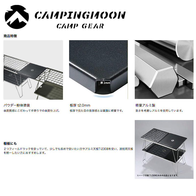 ★キャンピングムーン★CAMPINGMOON★フィールドラック連結用★アルミハーフ天板★T-2309-BK★フィールドラックジョイントパーツ★ | |||