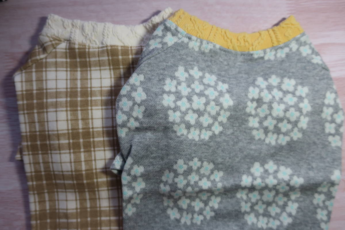 【S・2枚セット】袖付き 紫陽花 チェック 小型犬 犬服 ドッグウエア dog 小型犬 ハンドメイド