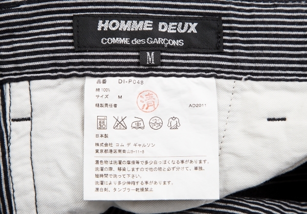 コムデギャルソン オムドゥCOMME des GARCONS HOMME DEUX シアサッカーストライプテーパードパンツ 黒白M |