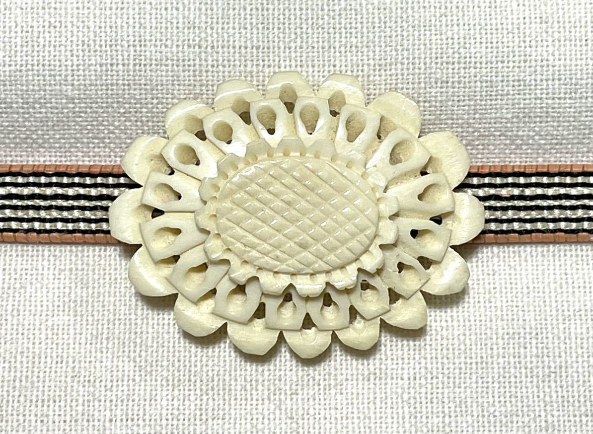 アイボリー?オフホワイト?のアクセサリーを帯留めにリメイクしました。