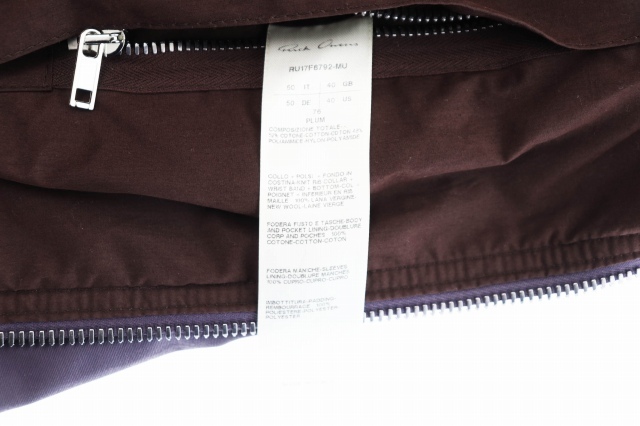 リックオウエンス Rick Owens 17AW RAGLAN FLIGHT BOMBER PLUM MA-1 ボンバー ジャケット RU17F8792-MU 50 パープル ブランド古着ベクトル 中古☆AA★ 240120