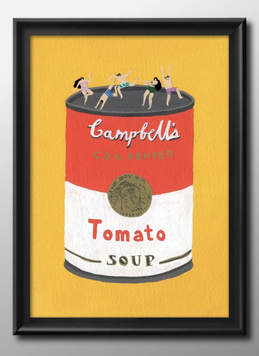 13984■送料無料!!アートポスター 絵画 A3サイズ『トマトスープ缶の上の人々 キャンベル』イラスト 北欧 マット紙