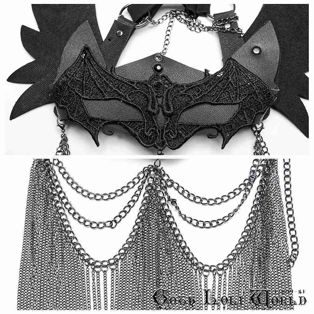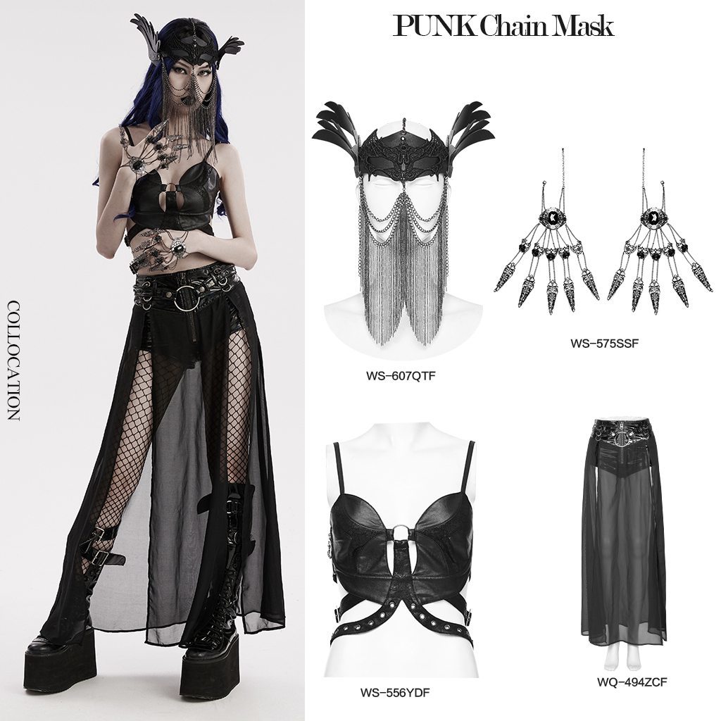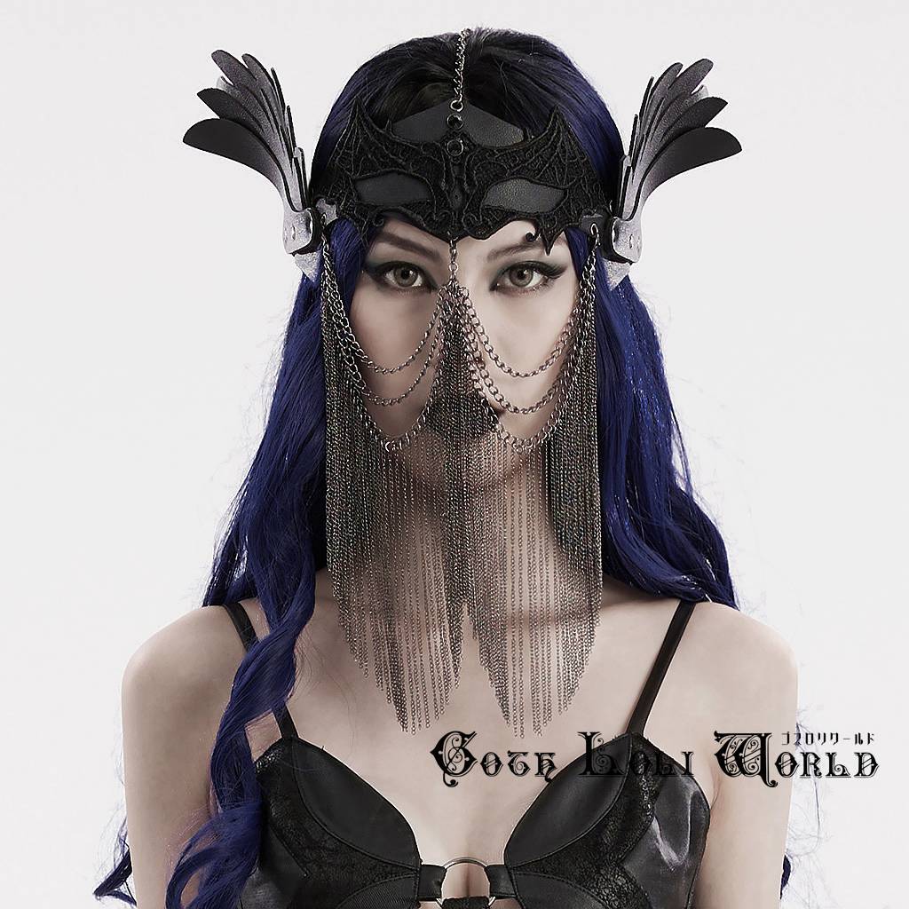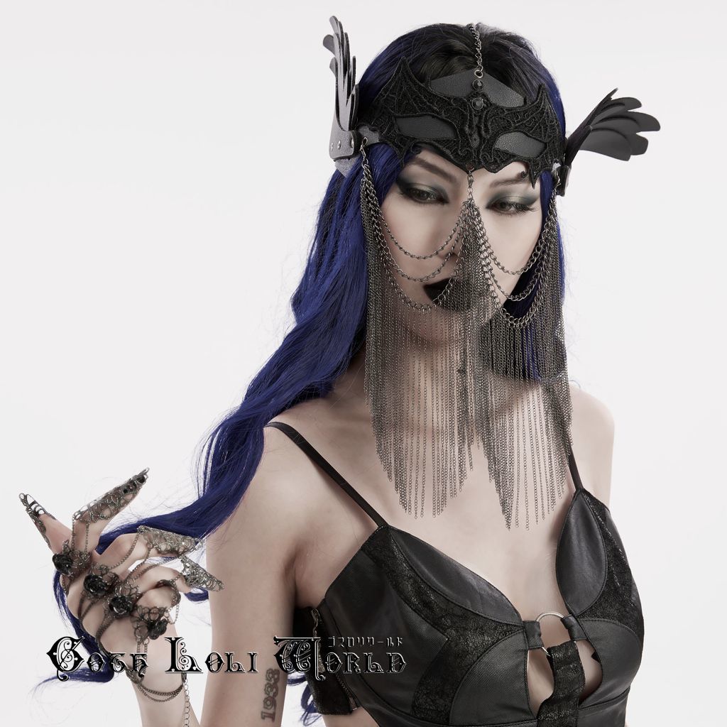 WS-607QTF-BK-F 着脱フリンジチェーンフェイスベール マスク ゴスロリワールド ゴシック パンク ロック ロリィタ ビジュアル系 V系
