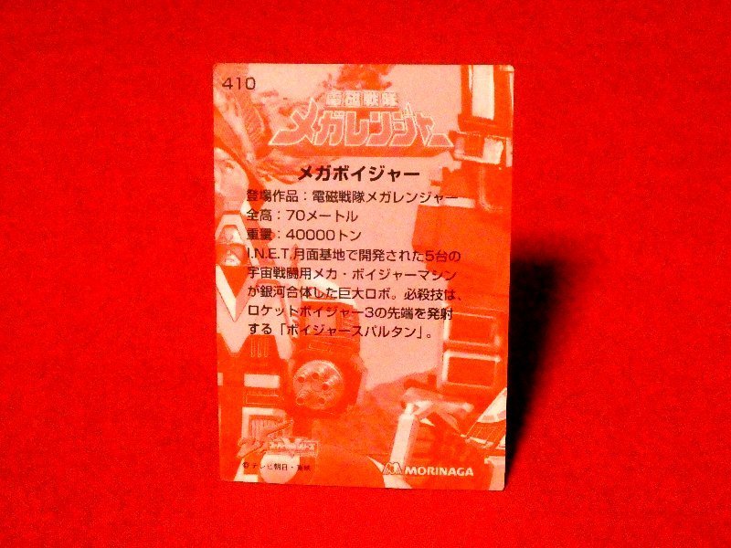 スーパー戦隊シリーズ 森永 25  電磁戦隊メガレンジャー TradingCard キラカードトレカ メガボジャー 410です。