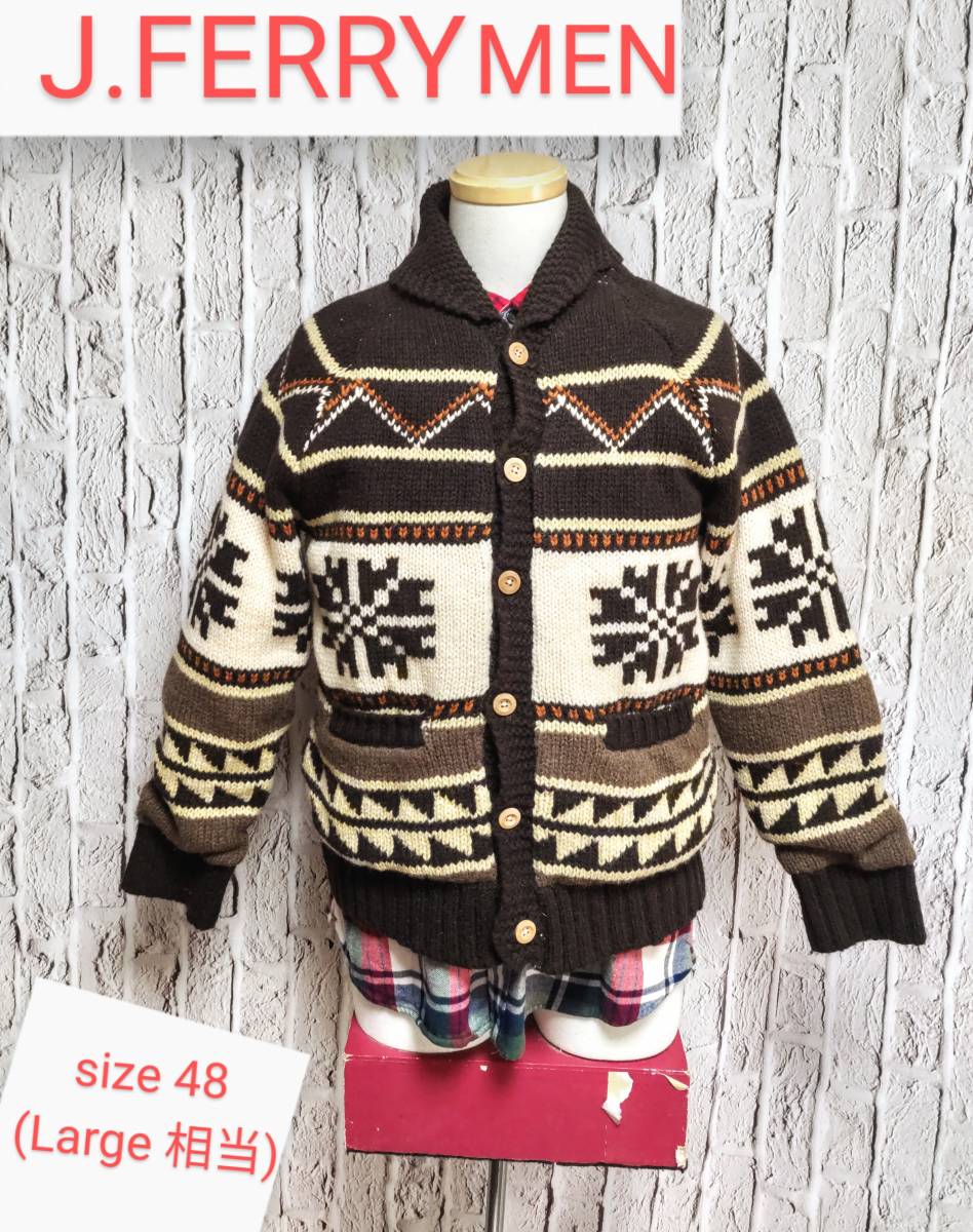 ★送料無料★ J.FERRY MEN ニットジャケット ジェイフェリー カウチンニット 雪の結晶 ブラウン Large 相当
