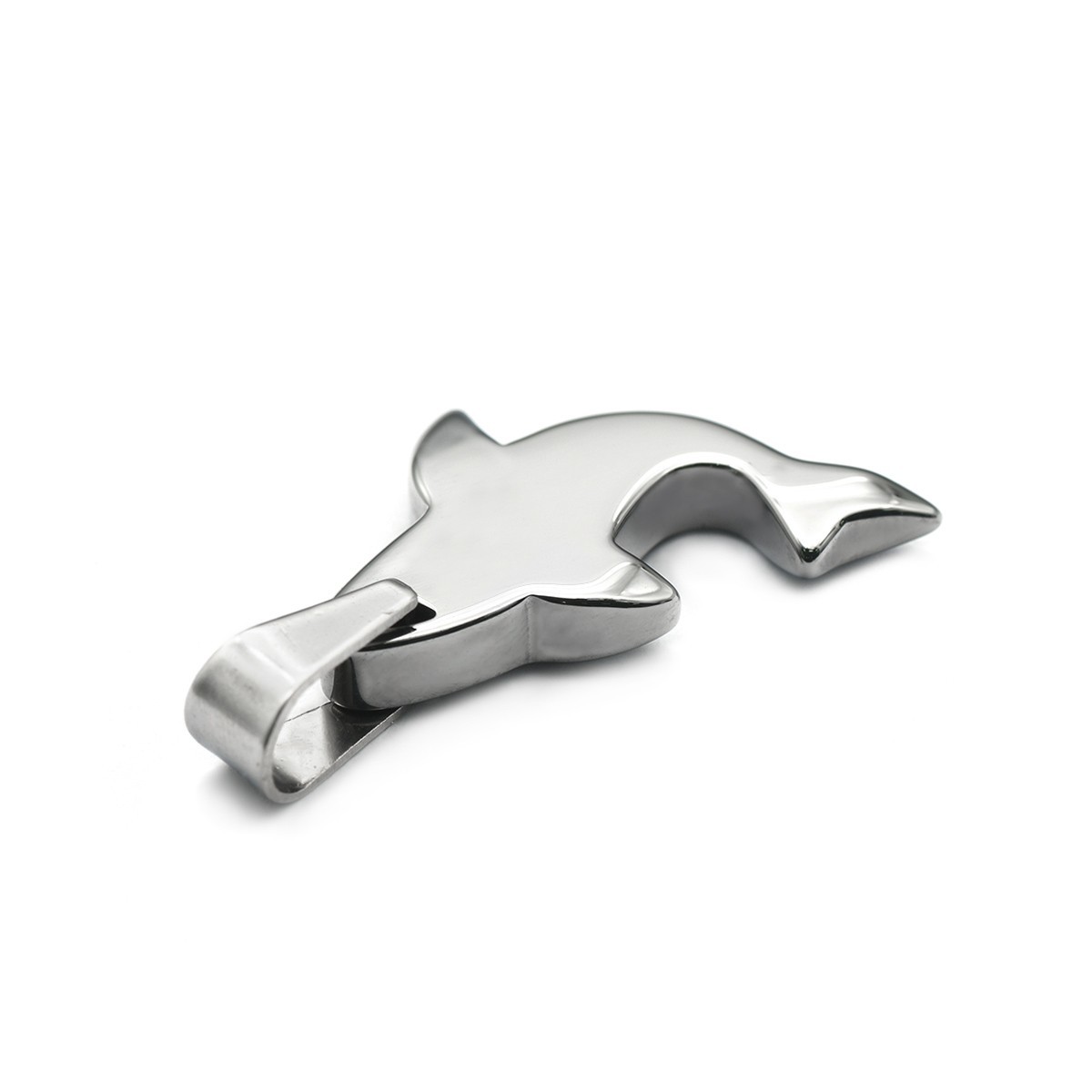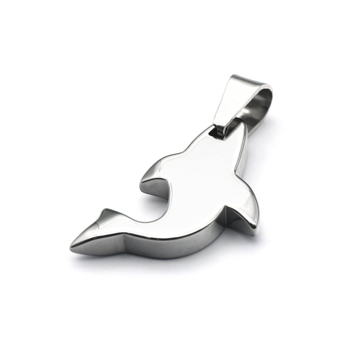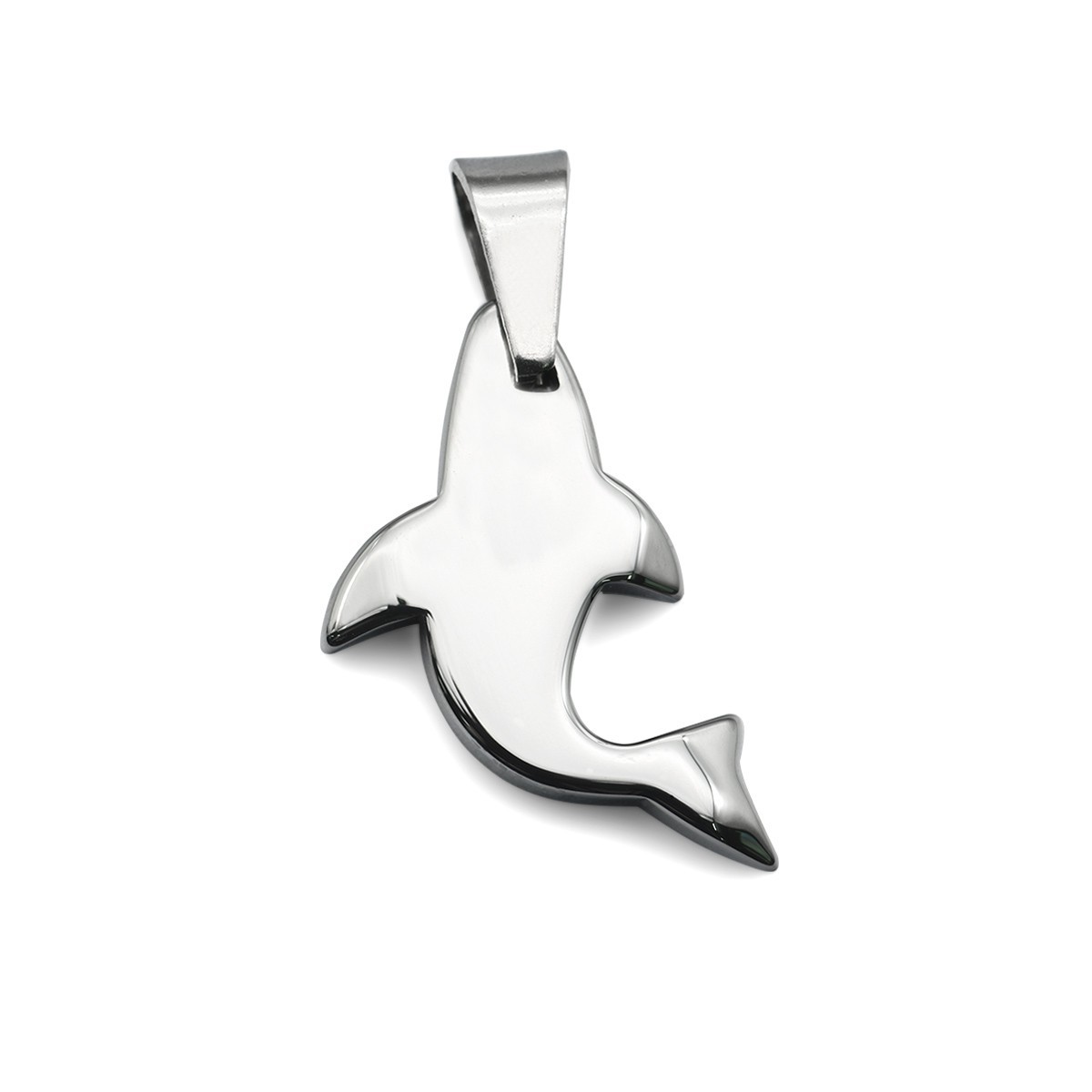 | シンプルながらクールなサメの形をしたプレートタイプのペンダントトップ。タングステンで出来ているので小振りですがずっしりとした重量があり特に男性の方にお勧めです。 |