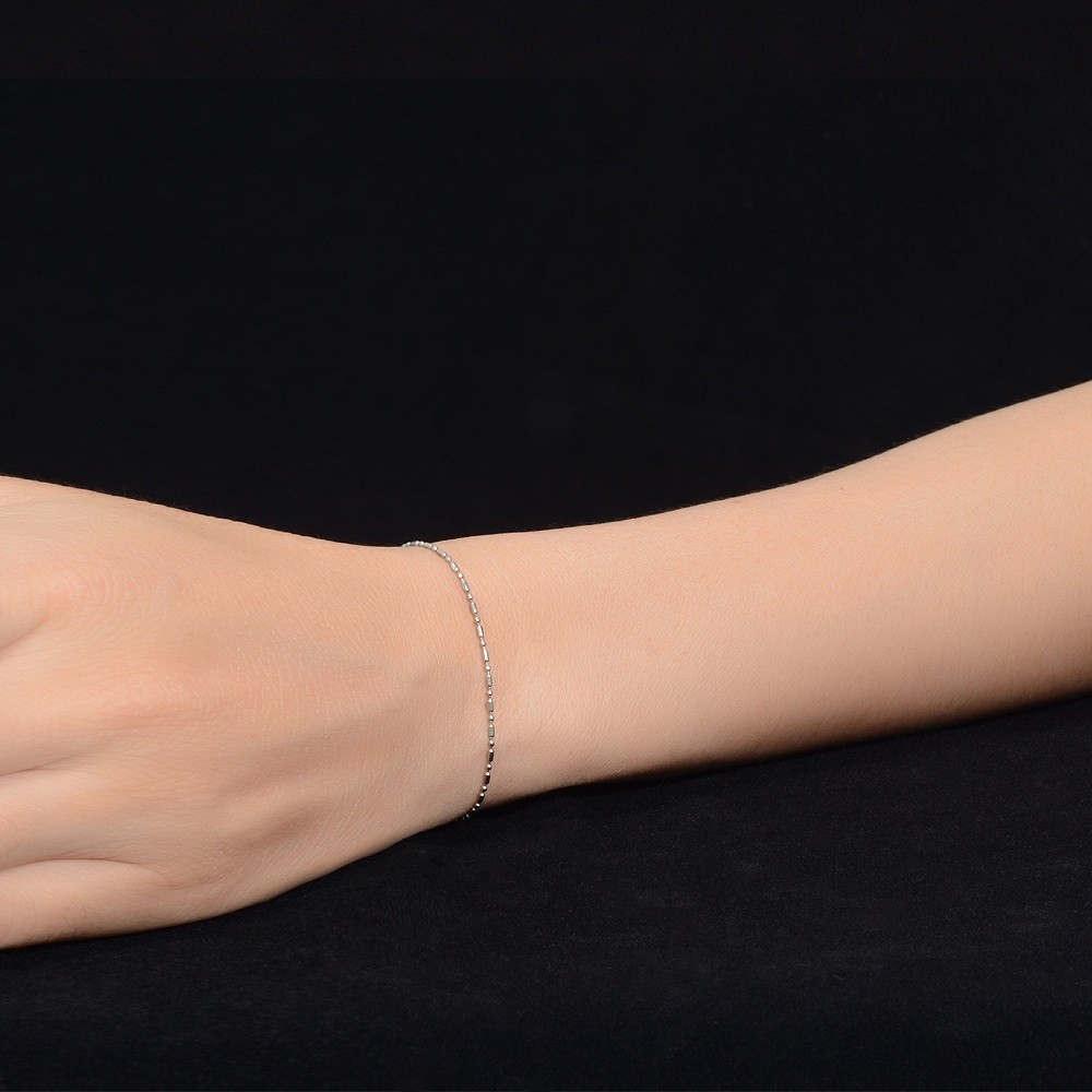 | 変形カットボールチェーンは俵型のバーとボールが交互に連なった変形ボールチェーンにカットを入れたブレスレットです。棒と球のパーツが連なるので(BAR×ROUND)、BRチェーンと商品名に付いております。 ※こちらのチェーンは絡まりにくく万が一絡まってしまったとしても解きやすいデザインです。 |