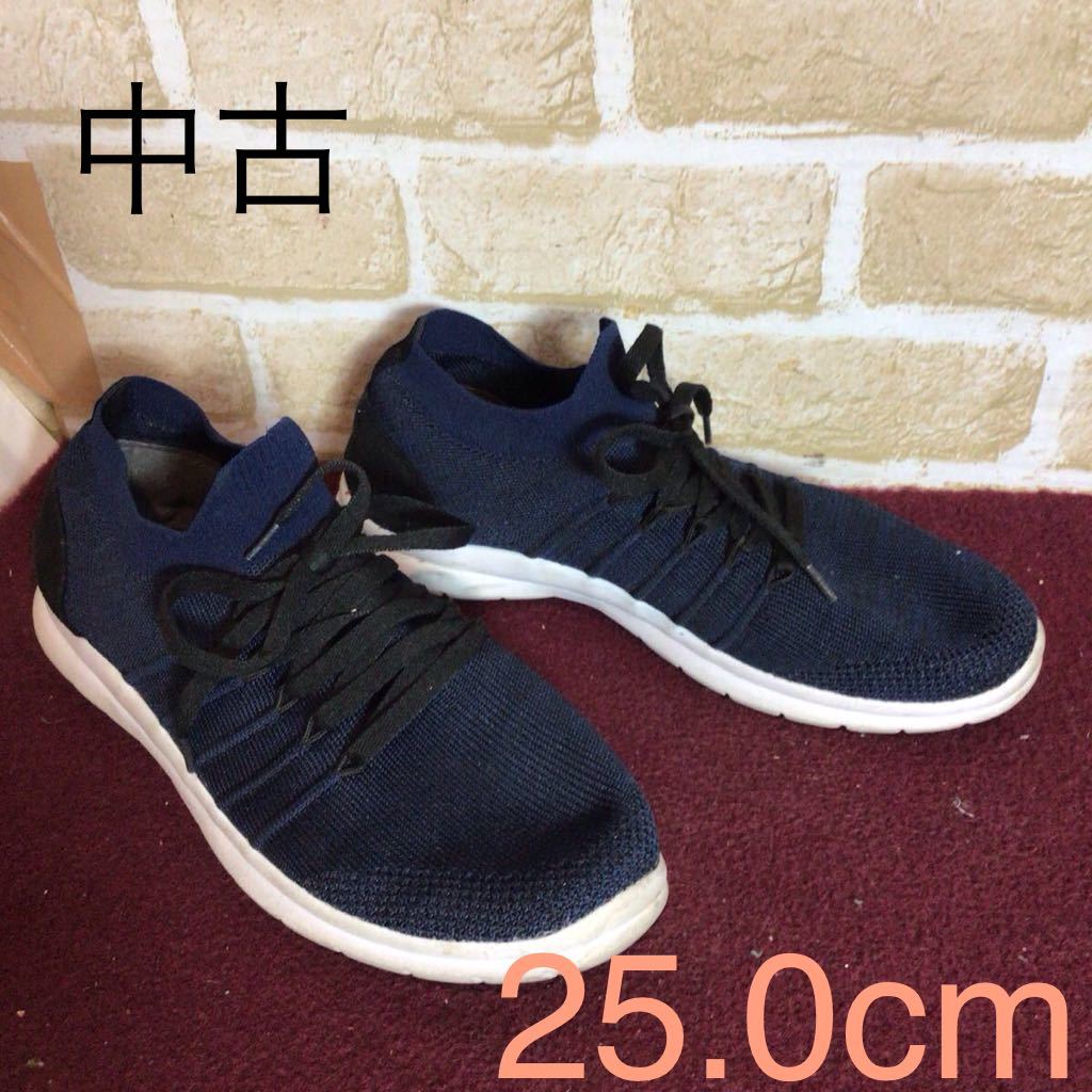 【売り切り!送料無料!】A-336 スニーカー!25.0cm!ネイビー!紺色!ゴム!伸縮性有り!普段ばき!フィット感あり!中古!