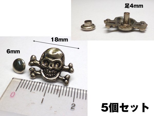 スタッズ【07】ドクロS 5個セット 13.5×18mm(新品・未使用)