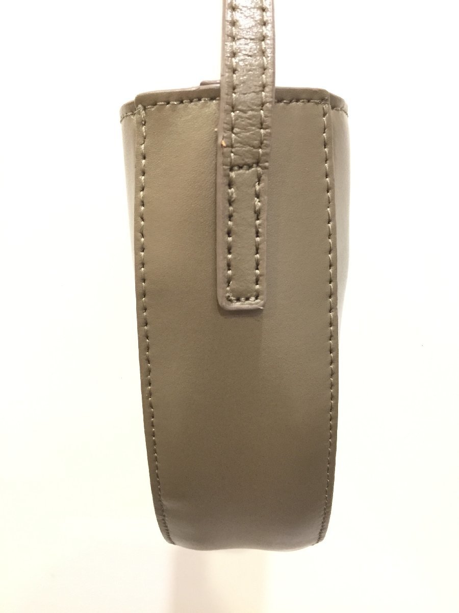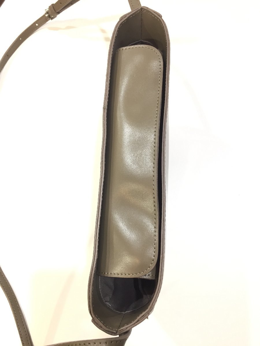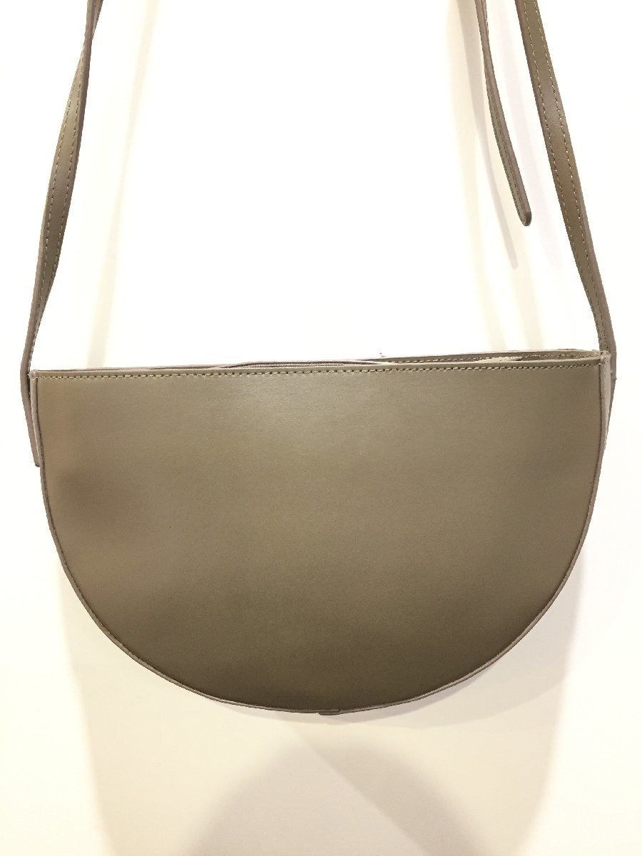 ハームムーン型のショルダーバッグです。内側にはジップポケットが1つ、オープンポケットが1つあります。開口部分はマグネットボタンが付いており、物を出し入れしやすいデザインです。ショルダーには7つホールがあり長さ調整が可能です。