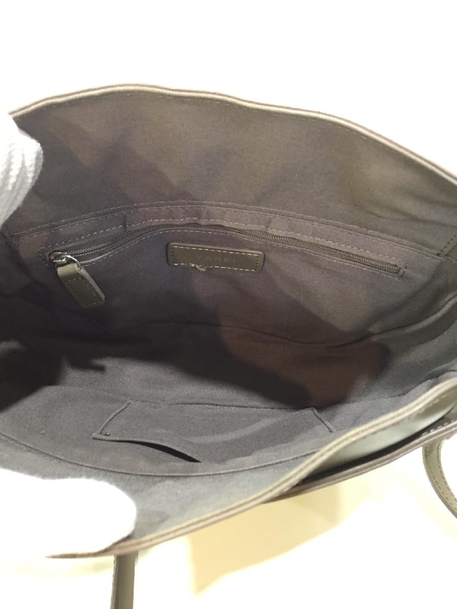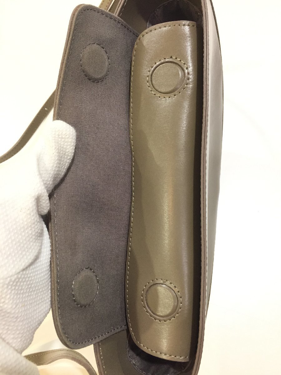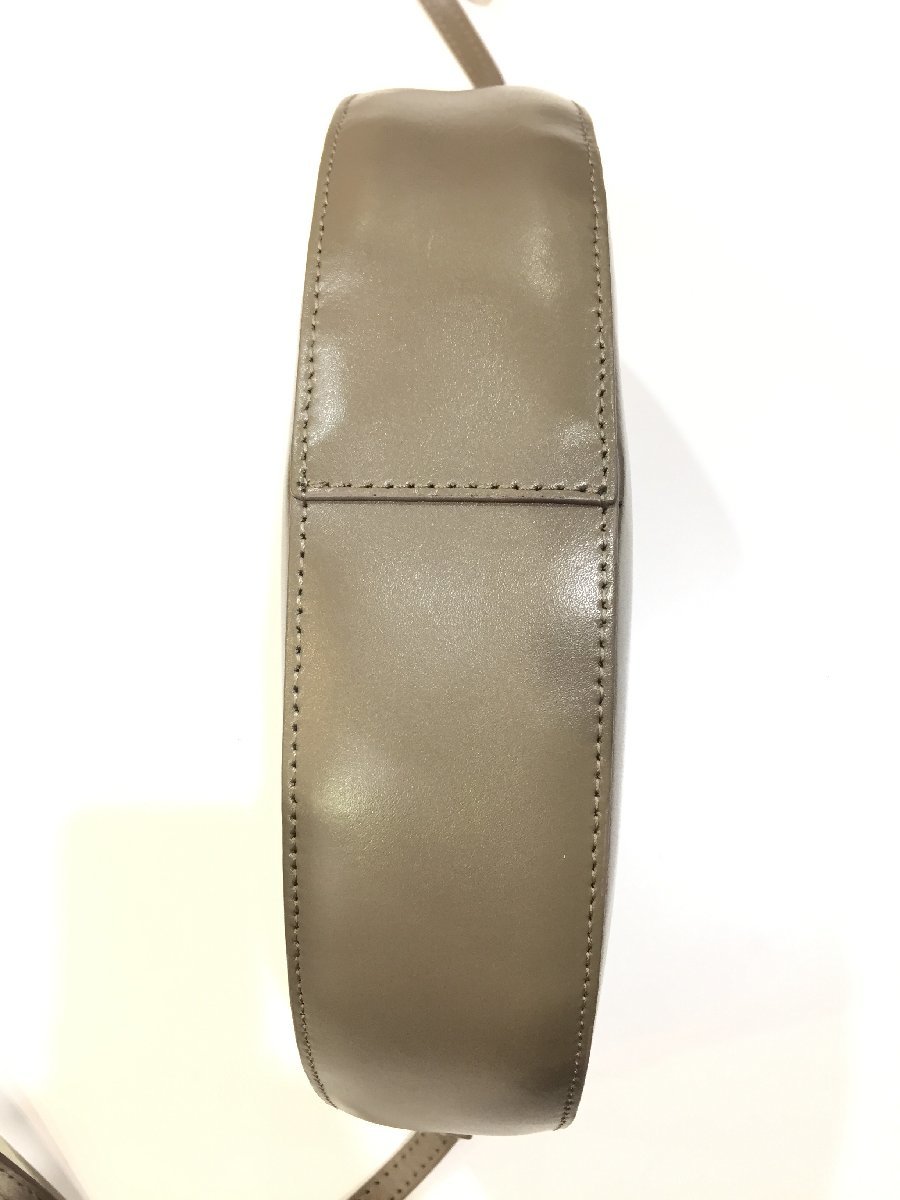 ハームムーン型のショルダーバッグです。内側にはジップポケットが1つ、オープンポケットが1つあります。開口部分はマグネットボタンが付いており、物を出し入れしやすいデザインです。ショルダーには7つホールがあり長さ調整が可能です。