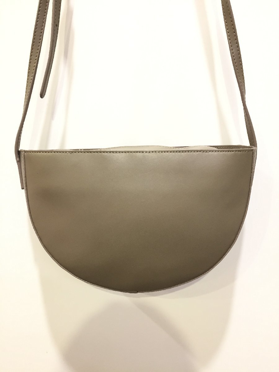 YAHKI ヤーキ ハーフムーン型 ショルダーバッグ レザーバッグ 鞄 カバン 床革 ベージュ