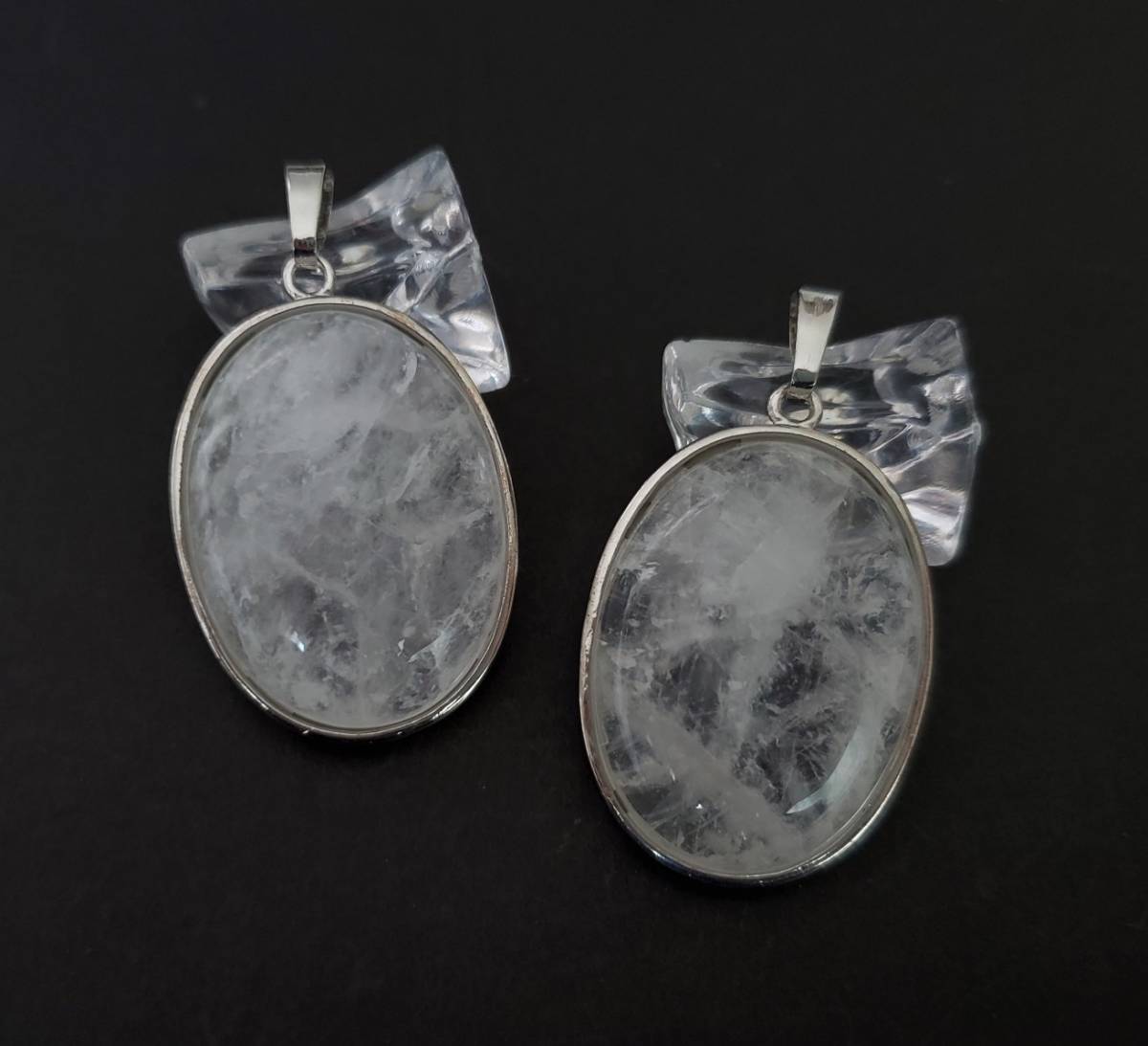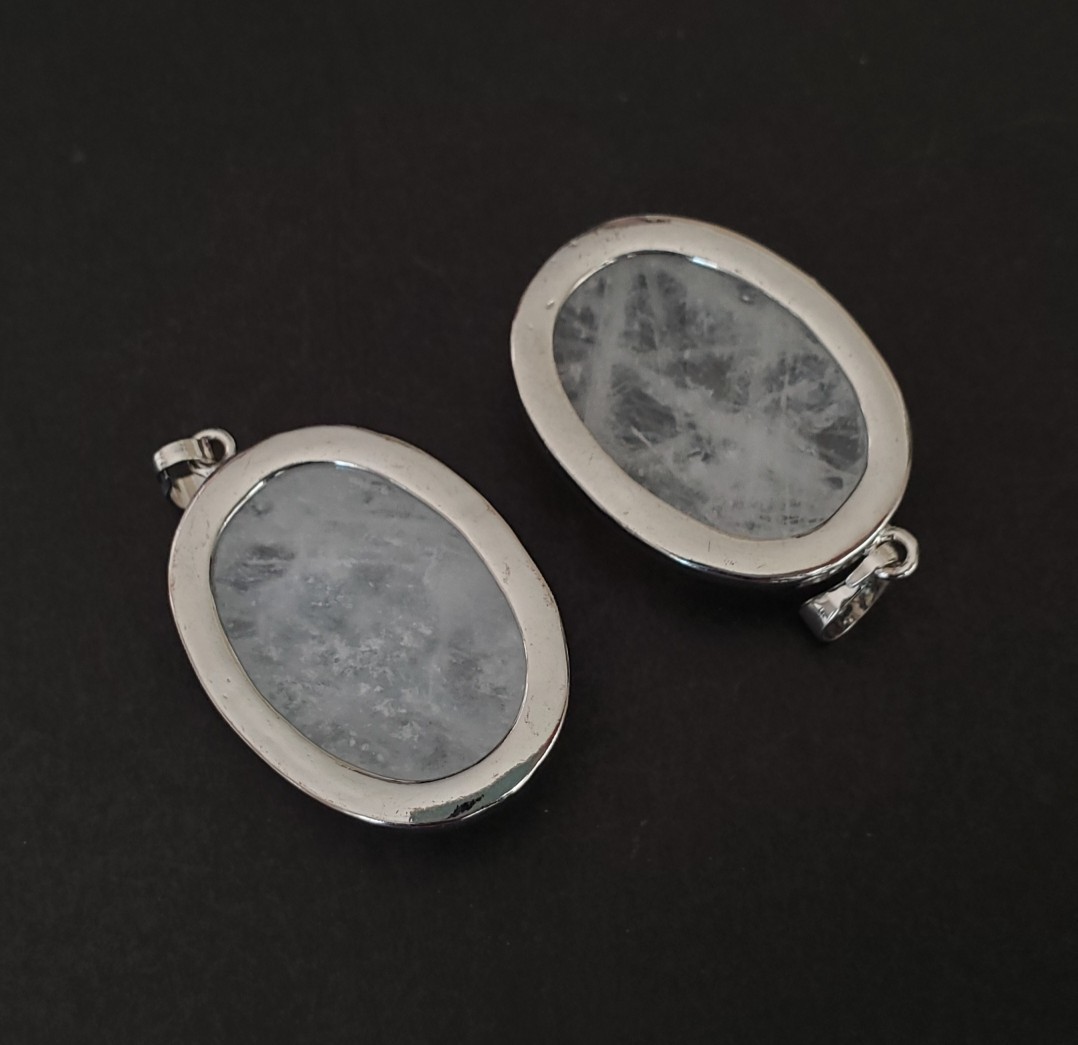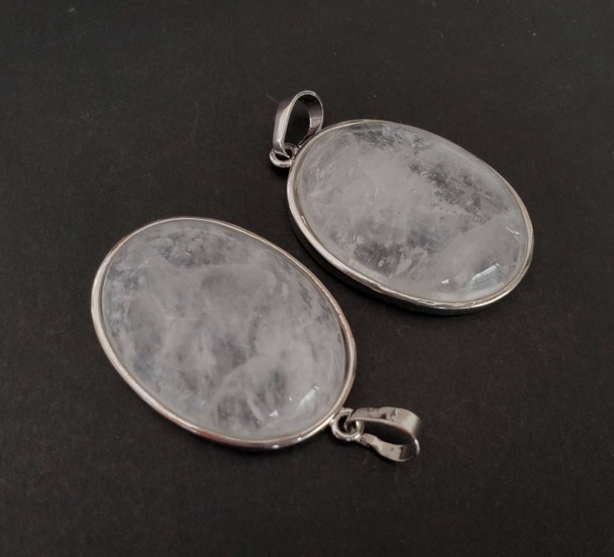 ◆商品名・・・【水晶】ペンダントトップ2個セット *添付画像の物は実際にお送りするお品です。 *裏面はフラットに綺麗に研磨され、縁取りがあります。 ◆サイズ・・・石:縦3.1㎝ 横幅2.2㎝ 厚さ0.7㎝ 金具部分込み 長さ4.3㎝ 11.0g/1個 ◆素材・・・天然石 ステンレス 亜鉛合金 ◆チェーン等は付属しておりません。 存在感のサイズ感で、ワンポイントにぴったりです。 天然石の為、含有物・小さなキズや欠け・微妙な色味の違いや模様の違い等がある場合がございます。予めご了承くださいませ。 ★☆他にも天然石ペンダントトップ出品中☆★ |