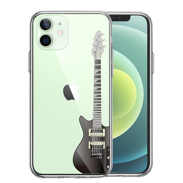 iPhone12mini ケース クリア エレキギター 黒 スマホケース 側面ソフト 背面ハード ハイブリッド