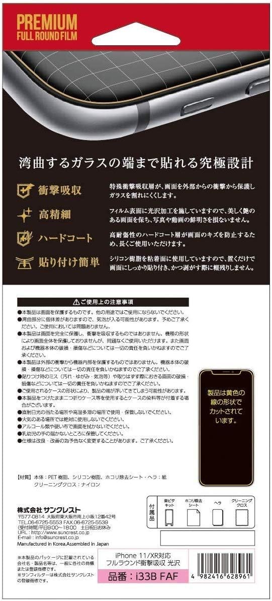 フィルム表面に光沢加工を施していますので、美しく艶のある画面を保ち、写真や動画を鮮明さを損ないません。