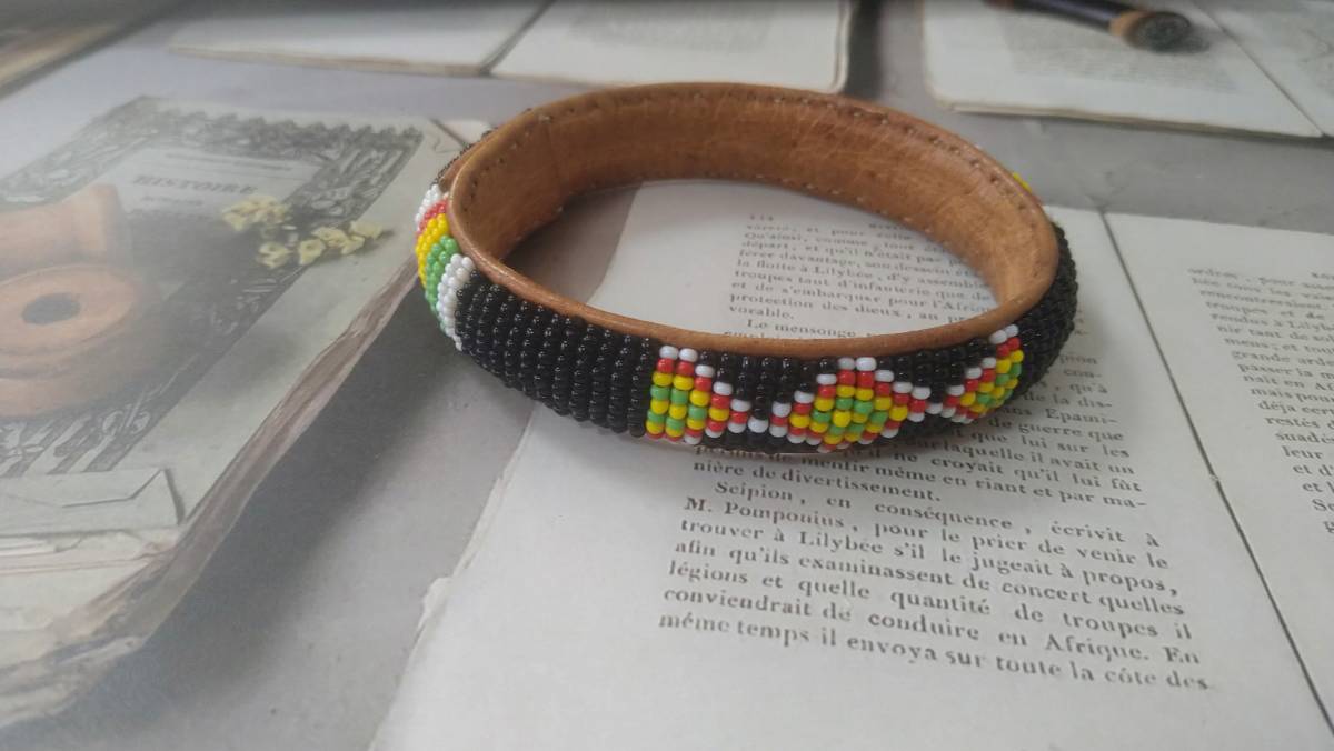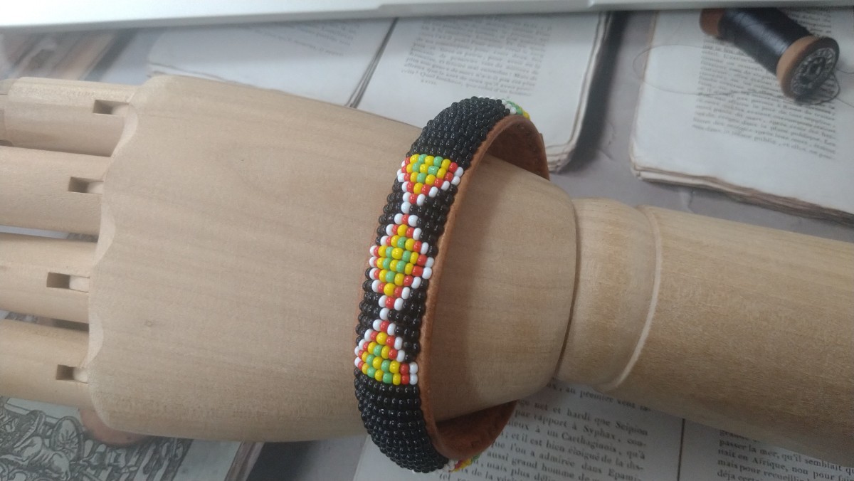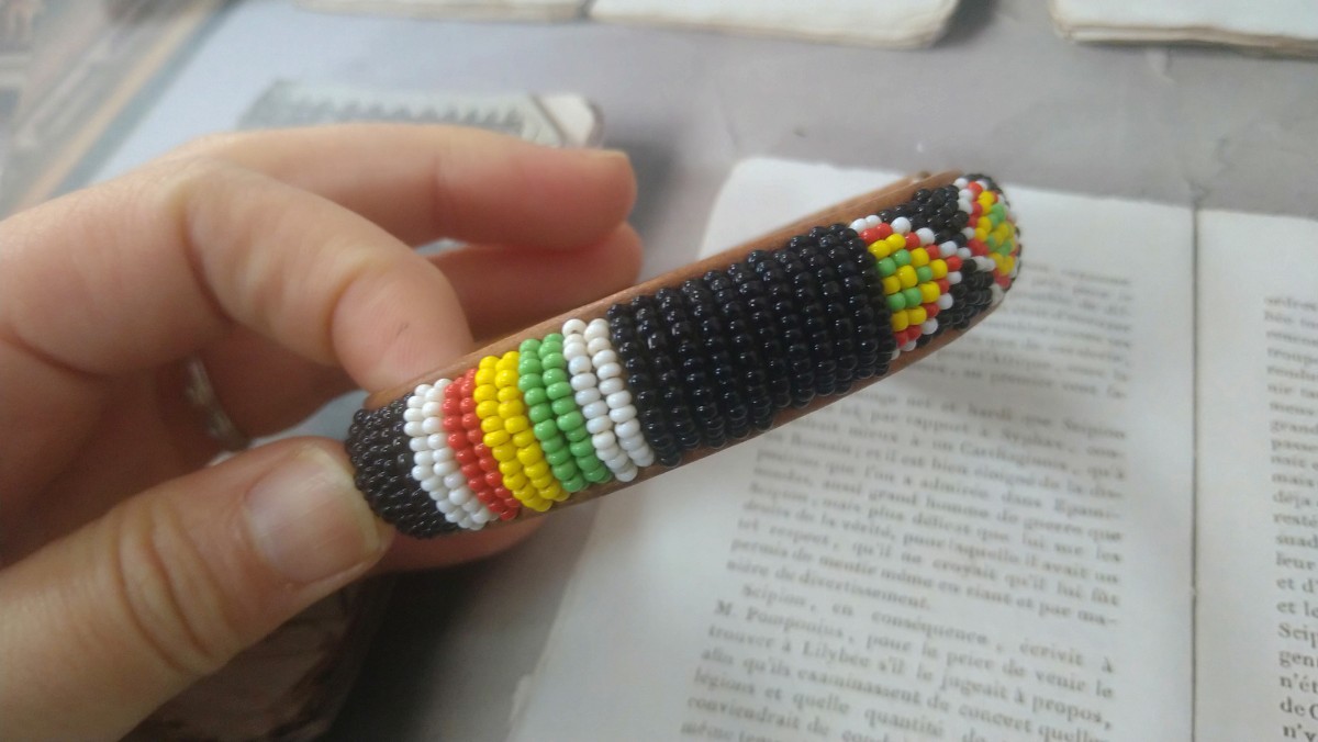 黒・赤・黄色・黄緑ビーズ 太バングル | |||