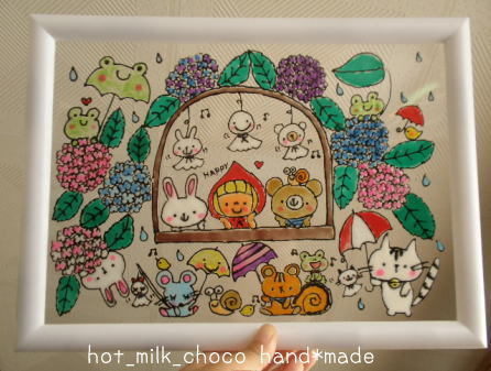 ★NO.A05★ステンドグラス風・A4サイズ・紫陽花・アジサイ・花・赤ずきん・女の子・カエル・雨・ハンドメイド・雑貨・インテリア・女の子