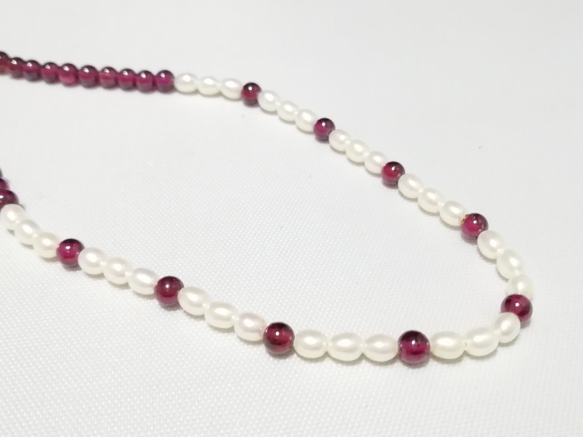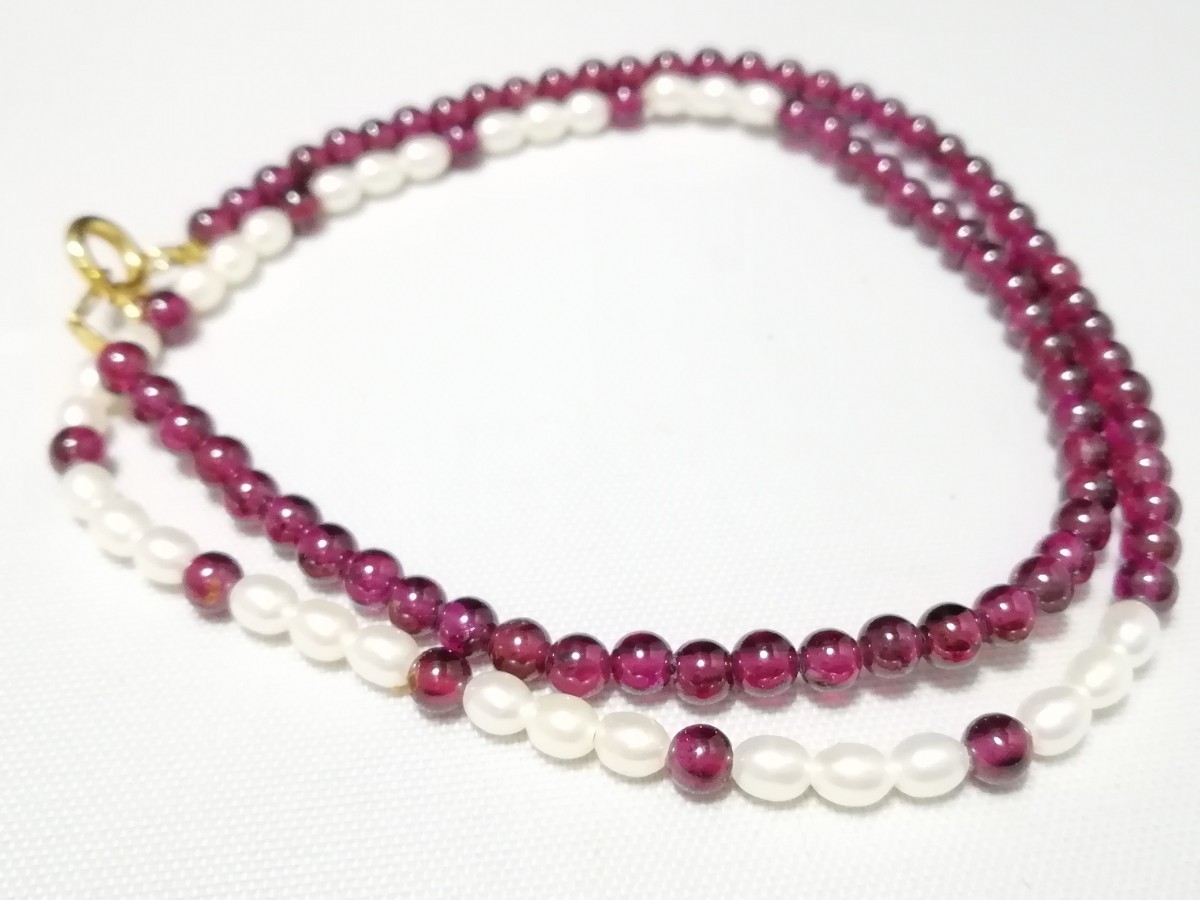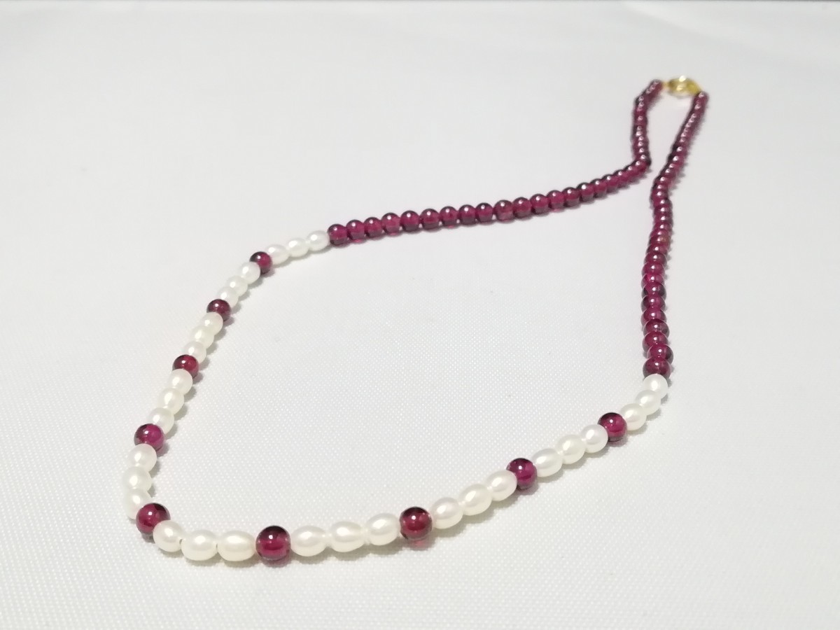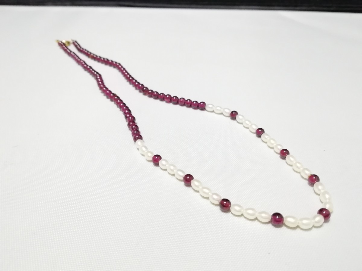 天然ガ−ネット丸玉&淡水パールコンビネックレス